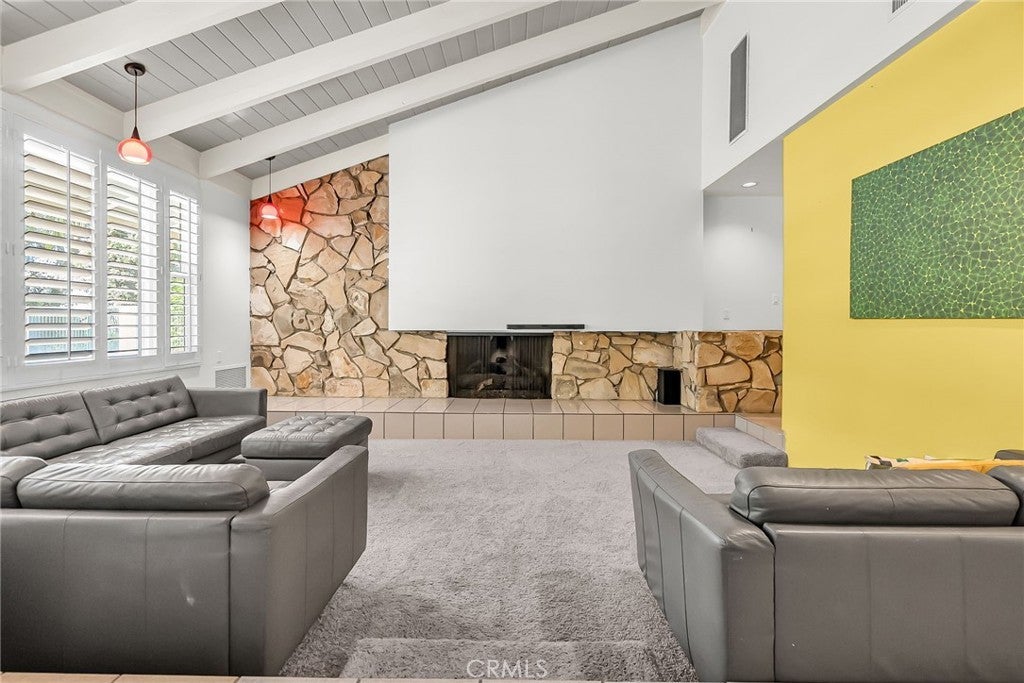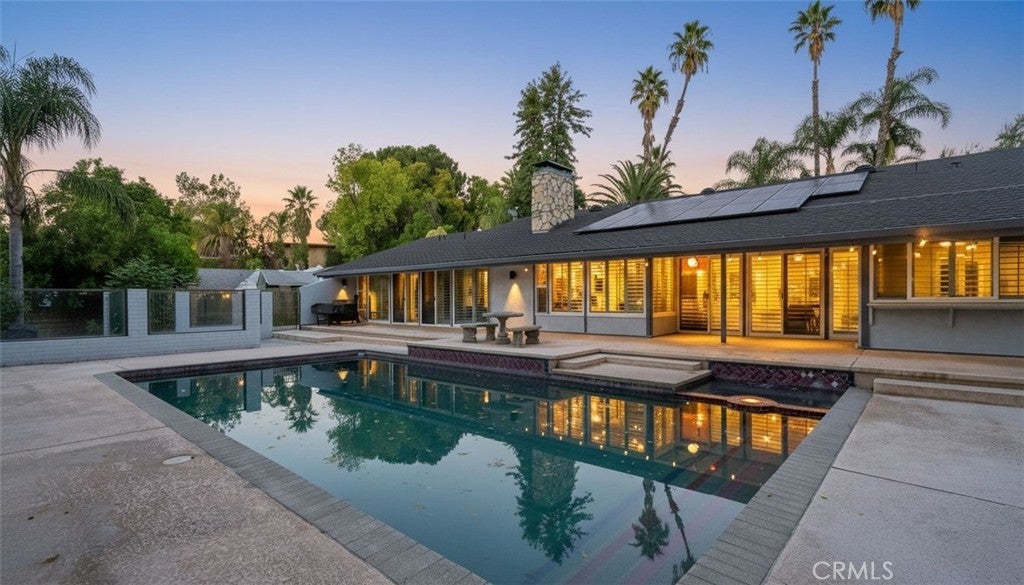 HAWARDEN HILLS - OLEANDER HEIGHTS- Designed by the acclaimed modernist architect Robert Miller, AIA, and built in 1972 for Dr. and Mrs. Stephan K. Haller, this late mid-century California Modern ranch home is a masterpiece of timeless design and effortless living. Every detail of this home reflects its architectural pedigree, emphasizing seamless indoor-outdoor living and a warm, welcoming atmosphere. At the heart of the property is the stunning pool area, enclosed by a striking combination of glass and masonry walls, creating a private oasis while maintaining a connection to the surrounding outdoor spaces. A sheltered entryway leads to the main living area, where a spacious dining room with a wet bar flows into a sunken great room, complete with soaring wood-beamed ceilings and a dramatic flagstone fireplace—perfect for both intimate gatherings and grand entertaining. The kitchen is a chef’s dream, featuring sleek stone countertops, built-in appliances, and a massive walk-in pantry, all designed for both style and functionality. Adjacent, you’ll find a convenient laundry room for added practicality. The private primary suite, situated at the rear of the home, boasts a cozy study/retreat with a stone fireplace, a luxurious spa-like bath, abundant built-in storage, and a generous walk-in closet. The secondary bedrooms are smartly positioned up a gentle four-step incline, each with an en-suite bath for ultimate comfort and privacy. One of the bedrooms, located near the foyer, offers flexible options as a guest suite or private retreat. The outdoor spaces are equally impressive. The expansive patio surrounding the pool is ideal for entertaining, complete with a separate pool bath. Mature trees and lush landscaping further enhance the sense of tranquility and seclusion on this cul-de-sac lot. Additional amenities include an oversized two-car garage, gated RV or extra parking, and an expansive driveway. This one-of-a-kind residence blends iconic design with modern functionality, creating a serene yet sophisticated living environment.