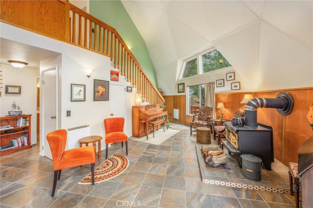 Set deep in a quiet forest at the end of Cedar Ave, this rare architectural home offers a true escape from city life. Just under two hours from Los Angeles, this unique property in Southern California is the kind of mountain getaway most people only dream about. Step inside, and the open interior immediately captivates. The geodesic dome design is a striking example of architectural craftsmanship, creating a sense of awe from the moment you enter. Settle in by the living room's center wood-burning stove, where mountain views, natural warmth, and a one-of-a-kind acoustic experience invite you to slow down and disconnect. The adjoining dining area delivers a cozy mountain cabin feel, while the oversized kitchen features custom-made cabinetry, ample counter space, and standard appliances that make cooking and gathering effortless. Retreat to the office addition at the back of the home, where a large window frames the snowy landscape. This is an ideal creative retreat for artists, writers, and remote workers looking for a peaceful place to focus and find inspiration. The downstairs guest bedroom offers privacy and easy access to the bathroom and laundry room, perfect for hosting guests. Upstairs, the primary bedroom is the crown jewel of the experience. Perched on the second floor, it offers the best mountain views and the most dramatic perspective of the dome's interior architecture. A private bathroom with a walk-in shower completes this personal sanctuary. Outside, the wrap-around deck is where the experience truly comes alive. Surrounded by the sounds of nature and panoramic views of the San Bernardino National Forest, this is the kind of setting that makes you forget Los Angeles and Orange County are just a short drive away. Located minutes from Redlands for shopping, dining, and essentials, this property offers the best of both worlds. Its unique character, stunning forest setting, and proximity to the greater LA area also make it a strong candidate for short-term rental investment, attracting guests searching for one-of-a-kind weekend getaways from Los Angeles. Financing is available, making this a rare opportunity to own something truly one-of-a-kind. Don't let this one pass you by.