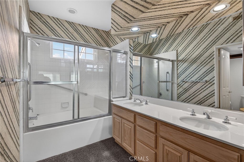 SOUTH WEST CORONA- BELLA VISTA - Welcome to this bright and spacious 3 bedroom, 3 bathroom condominium in the quiet Bella Vista community. The living room boasts a soaring ceiling, fireplace, and transom windows for extra light. The kitchen offers plenty of storage space and opens to a formal dining area. The downstairs bedroom, currently configured as an office, includes built-in wood shelving plus access to an updated downstairs guest bathroom. Upstairs are 2 additional bedrooms, each with vaulted ceilings and ensuite bathrooms. The private backyard is accessible via both living room and dining area and offers a patio cover and brick planters. HOA amenities include access to the community pool and spa and frontyard landscape maintenance. Convenient access to 91 freeway and shopping.