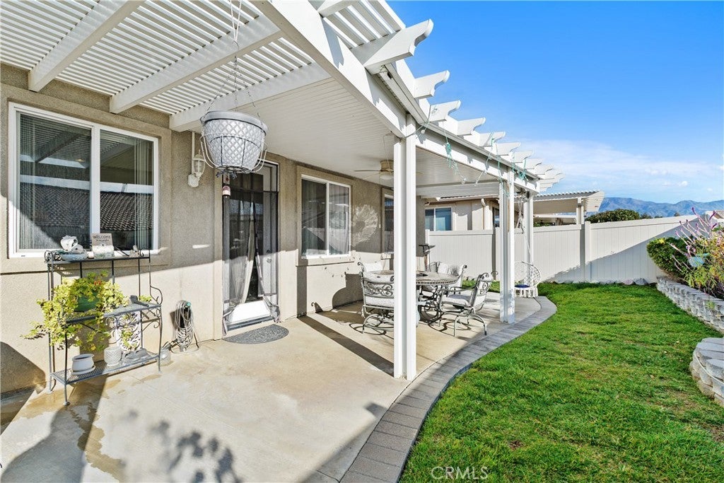 Discover resort-style living in the prestigious 55+ community of Four Seasons, where comfort, elegance, and an active lifestyle come together beautifully. This home welcomes you with an open-concept design that seamlessly blends the kitchen, living room, and dining area are perfect hosting family and friends. Sunlight pours into the spacious living and dining combo, creating a warm, airy atmosphere. The kitchen offers abundant cabinetry, generous counter space, and a butlers pantry area. The primary suite is a peaceful sanctuary and a luxurious en-suite bathroom complete with dual sinks, a shower with bench seating, and a walk-in closet. Guests will appreciate their own private bedroom and full bath located on the opposite side of the home for added privacy. A versatile den/office with an additional bonus room provides endless possibilities. Additional conveniences include a dedicated laundry room with cabinetry, and direct access to the 2-car-garage. Step outside to your private backyard retreat, highlighted by low-maintenance landscaping and a covered patio. It’s the perfect setting for quiet mornings and outdoor entertaining. Experiences within the community: There are two recreation centers. The Lodge is the centerpiece of the community and provides the ideal place to mingle with neighbors and friends. The Lodge includes several hobby and craft studios, a theater, library, grand ballroom, card room and computer center. The Bistro is a great place to relax with friends over a casual lunch or an elegant dinner. There is a large outdoor Sports Complex spanning over 10 acres that includes an outdoor pool with a lovely patio and barbecue area. Four Seasons at Beaumont also keeps residents in terrific shape with tennis, pickleball, basketball and bocce ball courts. Fitness enthusiasts enjoy the state-of-the-art fitness center. The fitness center includes the latest cardiovascular and weight training equipment, plus an aerobics studio that offers low impact aerobics, yoga, and pilates classes. The Beaumont Spa also has a heated spa, billiards and a full-service salon. A recently opened Summit clubhouse. This facility offers an additional exercise room, lounge, and catering kitchen. There is also an indoor pool for getting in a few laps. Outdoors, a patio and barbecue area is well suited for community get togethers while enjoying breathtaking views of the surrounding mountains. Beyond the community are restraunts, shopping and nearby medical facilities.
