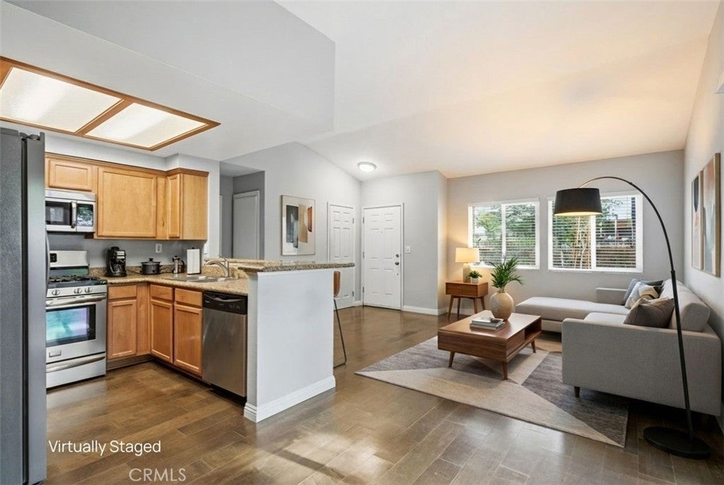 This single-story corner unit offers a rare combination of privacy, comfort, and convenience in Riverside’s sought-after Mission Grove neighborhood. With no stairs and no upstairs neighbors, the layout provides an easy, quiet living experience that stands out from typical condo living. Inside, wood flooring flows throughout the 730 square feet of living space, paired with a functional layout that feels open and efficient. Being a corner unit allows for added natural light and a more private setting. The home features two private patio areas, ideal for relaxing or creating usable outdoor space. One patio includes an additional storage closet, adding valuable functionality. The unit also includes a dedicated carport garage space. Located in a gated community, residents enjoy access to a pool, an on-site laundry room, and well-maintained landscaping. Conveniently situated near the 215 freeway, with quick access to the 91 and 60 freeways, this home is also only 10-minutes to UCR campus and is close to shopping, dining, and everyday essentials. Schedule your private tour today and see the benefits of corner-unit living.