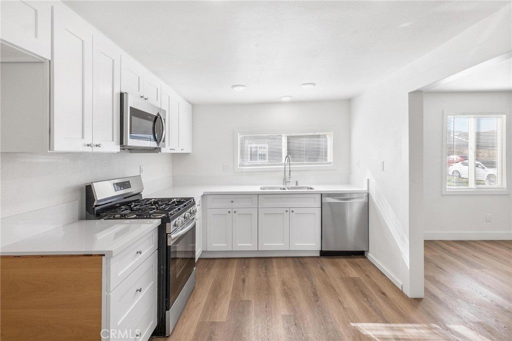 Welcome to this beautifully upgraded 2-bedroom, 1-bath home located in the heart of Corona. This move-in-ready property has been thoughtfully renovated with modern finishes and quality improvements throughout. The kitchen shines with brand-new appliances, new cabinetry, and sleek new countertops, creating a functional and inviting space for cooking and entertaining. Recent upgrades extend throughout the home and include a new electrical service panel, new windows, new flooring, updated plumbing fixtures, and all new switches and outlets. Comfort is enhanced with a new mini-split system, while fresh interior and exterior paint give the home a clean, contemporary feel. The bathroom has been updated with a new vanity and toilet, adding to the home’s modern appeal. Additional features include a new fence for added privacy, new mini blinds, and updated lighting throughout. With its extensive upgrades and turnkey condition, this charming Corona home is ready for its next owner to move in and enjoy.