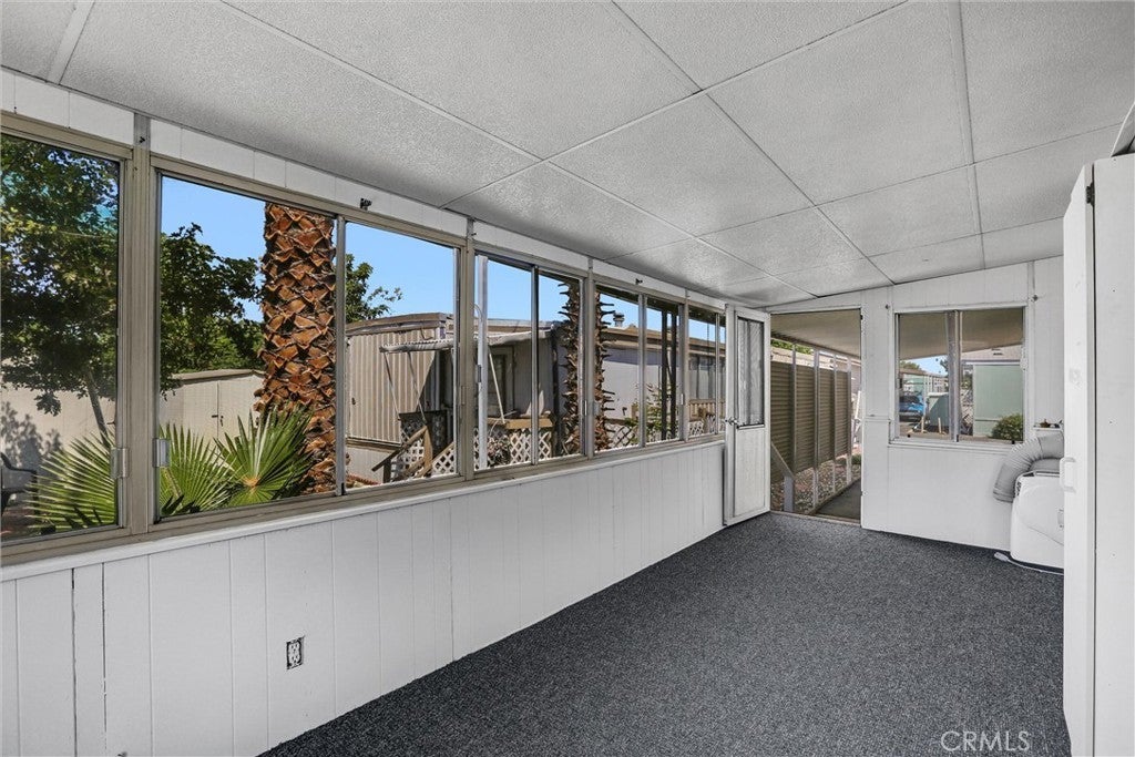 This unit has 2 bedrooms and 1 bath plus a large enclosed sun room patio space for all your storage needs! Both the interior and exterior of the unit have been freshly painted and exterior steps and patio have been newly carpeted. The kitchen and living area have vaulted ceilings and there are plenty of windows that provide natural light. The covered carport leads you to a second entry way that allows you to enter the home from the back enclosed patio that has brand new carpet and two built in storage areas. There is also an oversized shed in the back easily accessible by stone paper walkway. The park is a 55+ community that has has a clubhouse and pool with regularly scheduled activities for residents.
