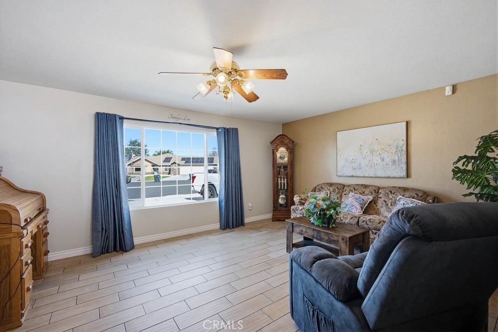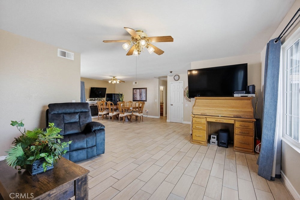 Welcome to this light and bright 4-bedroom, 2-bathroom home offering 1,556 square feet of well-designed living space and a spacious 3-car garage. The upgraded kitchen features modern finishes and flows seamlessly into the dining area, perfect for everyday living and entertaining. Tile flooring runs throughout the main living areas, complemented by a cozy fireplace that adds warmth and charm. Large, spacious bedrooms provide comfort and flexibility, while the upgraded bathrooms showcase granite countertops and tasteful finishes. Step outside to a large backyard with RV parking, ideal for outdoor enjoyment and extra storage or home based business. Additional highlights include solar for energy efficiency.