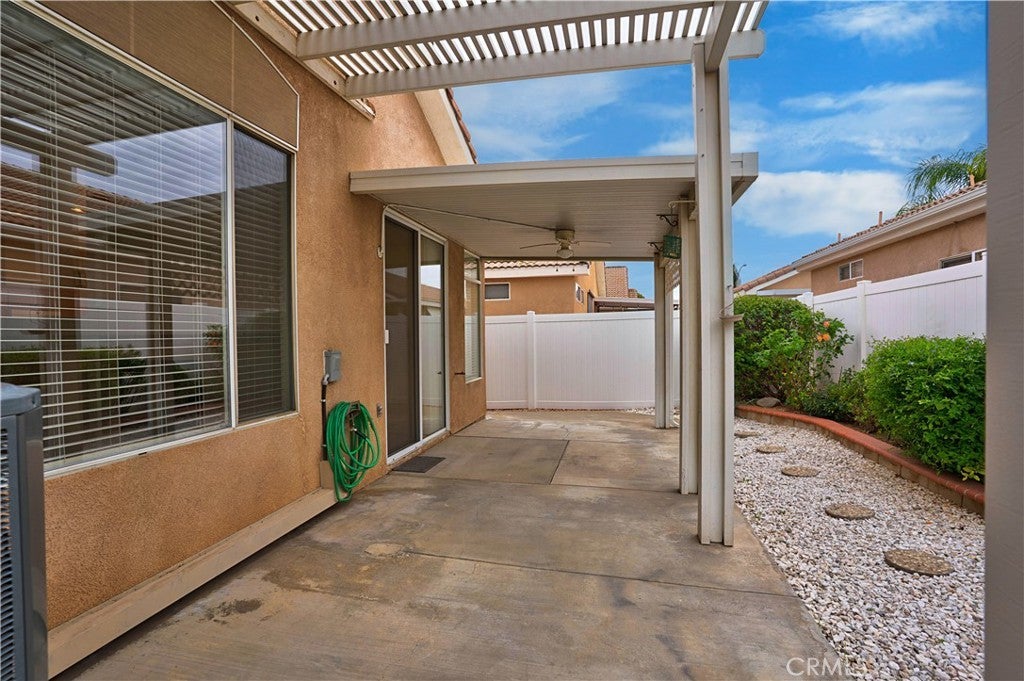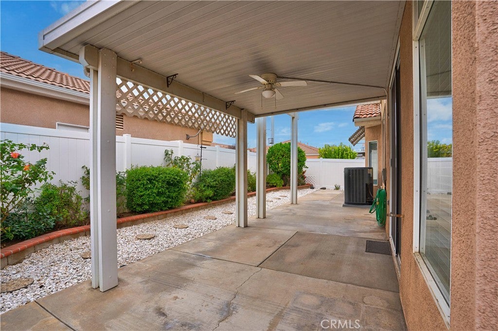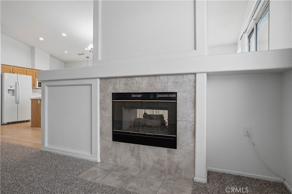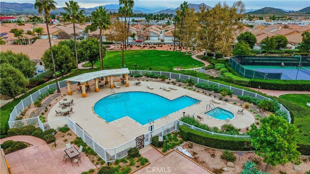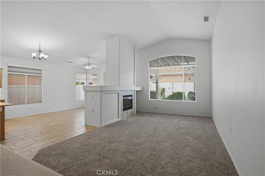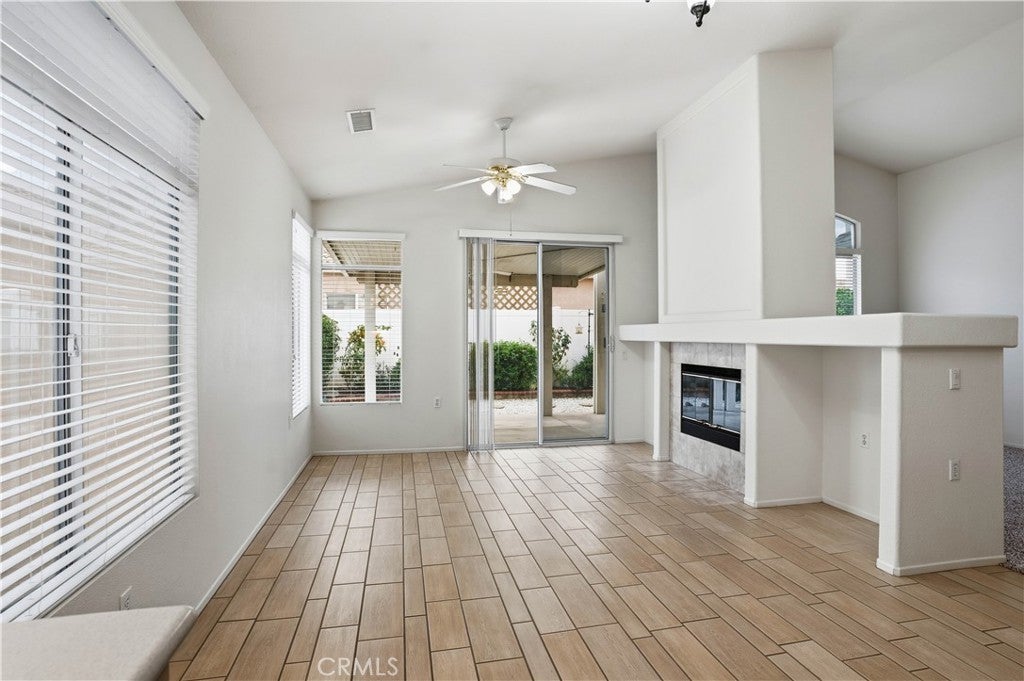 Welcome home to The Club in Menifee! This beautifully maintained 3-bedroom, 2-bath home offers comfort, style, and functionality in a desirable 55+ community. Upon entry, you are greeted by a bright and spacious foyer filled with natural light, creating an inviting first impression. The foyer flows seamlessly into the expansive living room, featuring a media niche with built-in shelving and a cozy double-sided fireplace that adds warmth and ambiance. On the opposite side of the fireplace, the dining and great room provide an open, versatile layout—perfect for entertaining or adding your own personal touches—with direct access to the back patio. The great room opens to the kitchen, creating a functional and social space ideal for gatherings and everyday living. The kitchen features a center island with additional seating for casual dining, recessed lighting, a walk-in pantry, solid surface countertops, under-cabinet lighting, and a double-door refrigerator. The primary bedroom is a private retreat with an ensuite bathroom offering a full walk-in shower, double-sink vanity with wardrobe lighting, privacy door, and a spacious walk-in closet. The secondary bedrooms are well-appointed, and the guest bathroom is conveniently located with an updated vanity and a tub-and-shower combination. Throughout the home, you’ll find custom architectural accents, raised-panel doors, ceiling fans, and a combination of carpet and LVP-style flooring. Additional highlights include a spacious two-car garage and a backyard designed for relaxation, featuring a large covered patio with ceiling fans, low-maintenance landscaping, and a fully fenced yard—perfect for enjoying morning coffee or afternoon breezes. The Club in Menifee is an active 55+ community featuring a private clubhouse with a fitness center, pool and spa, ballroom, library, billiards room, and multiple sport courts including tennis and shuffleboard. An arts and crafts studio and full-time activities director support a vibrant social lifestyle. Conveniently located near shopping, dining, and outdoor recreation, including Diamond Valley Lake.