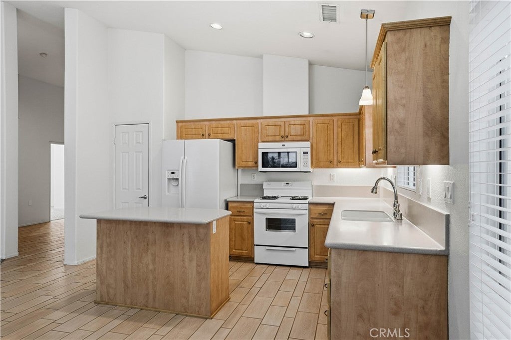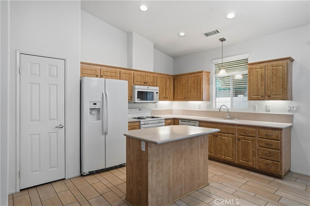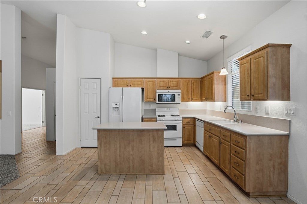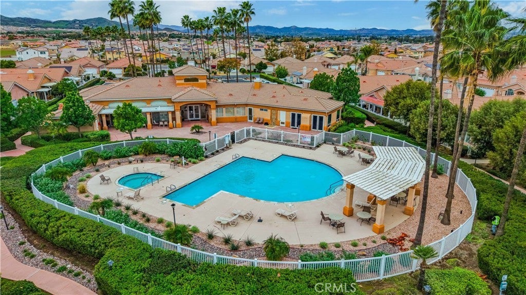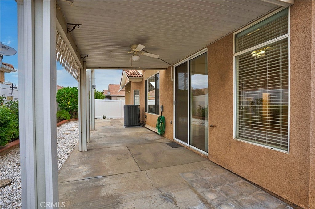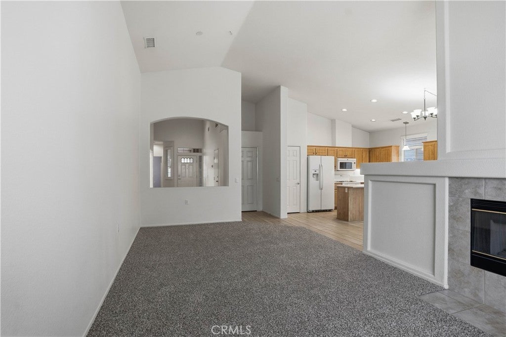 Welcome home to The Club in Menifee! This beautifully maintained 3-bedroom, 2-bath home offers comfort, style, and functionality in a desirable 55+ community. Upon entry, you are greeted by a bright and spacious foyer filled with natural light, creating an inviting first impression. The foyer flows seamlessly into the expansive living room, featuring a media niche with built-in shelving and a cozy double-sided fireplace that adds warmth and ambiance. On the opposite side of the fireplace, the dining and great room provide an open, versatile layout—perfect for entertaining or adding your own personal touches—with direct access to the back patio. The great room opens to the kitchen, creating a functional and social space ideal for gatherings and everyday living. The kitchen features a center island with additional seating for casual dining, recessed lighting, a walk-in pantry, solid surface countertops, under-cabinet lighting, and a double-door refrigerator. The primary bedroom is a private retreat with an ensuite bathroom offering a full walk-in shower, double-sink vanity with wardrobe lighting, privacy door, and a spacious walk-in closet. The secondary bedrooms are well-appointed, and the guest bathroom is conveniently located with an updated vanity and a tub-and-shower combination. Throughout the home, you’ll find custom architectural accents, raised-panel doors, ceiling fans, and a combination of carpet and LVP-style flooring. Additional highlights include a spacious two-car garage and a backyard designed for relaxation, featuring a large covered patio with ceiling fans, low-maintenance landscaping, and a fully fenced yard—perfect for enjoying morning coffee or afternoon breezes. The Club in Menifee is an active 55+ community featuring a private clubhouse with a fitness center, pool and spa, ballroom, library, billiards room, and multiple sport courts including tennis and shuffleboard. An arts and crafts studio and full-time activities director support a vibrant social lifestyle. Conveniently located near shopping, dining, and outdoor recreation, including Diamond Valley Lake.