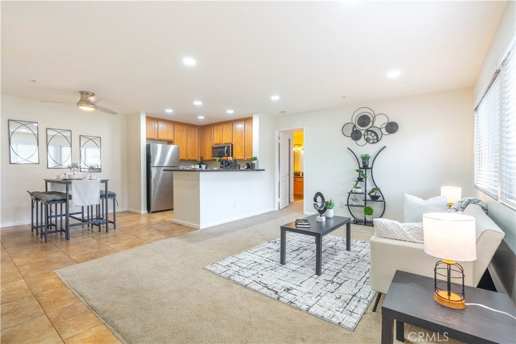 Located within a gated community, this single-level floor plan 2-bedroom, 2-bath condominium is positioned toward the rear of the complex, offering a more private setting. The light-filled living and dining area opens to a private patio, creating a comfortable indoor-outdoor connection and includes a living room fireplace. The functional kitchen provides ample workspace and storage, while both bedrooms are well-proportioned, including a primary suite with its own bathroom. The home features recently installed central air conditioning and forced-air heating, offering year-round comfort, along with recently installed smart light switches compatible with popular voice-assistant platforms for added modern convenience. Additional highlights include detached garage parking and a well-maintained community environment. Conveniently situated near Victoria Gardens, shopping, dining, and major commuter routes, this home presents an excellent opportunity for low-maintenance living in Rancho Cucamonga.