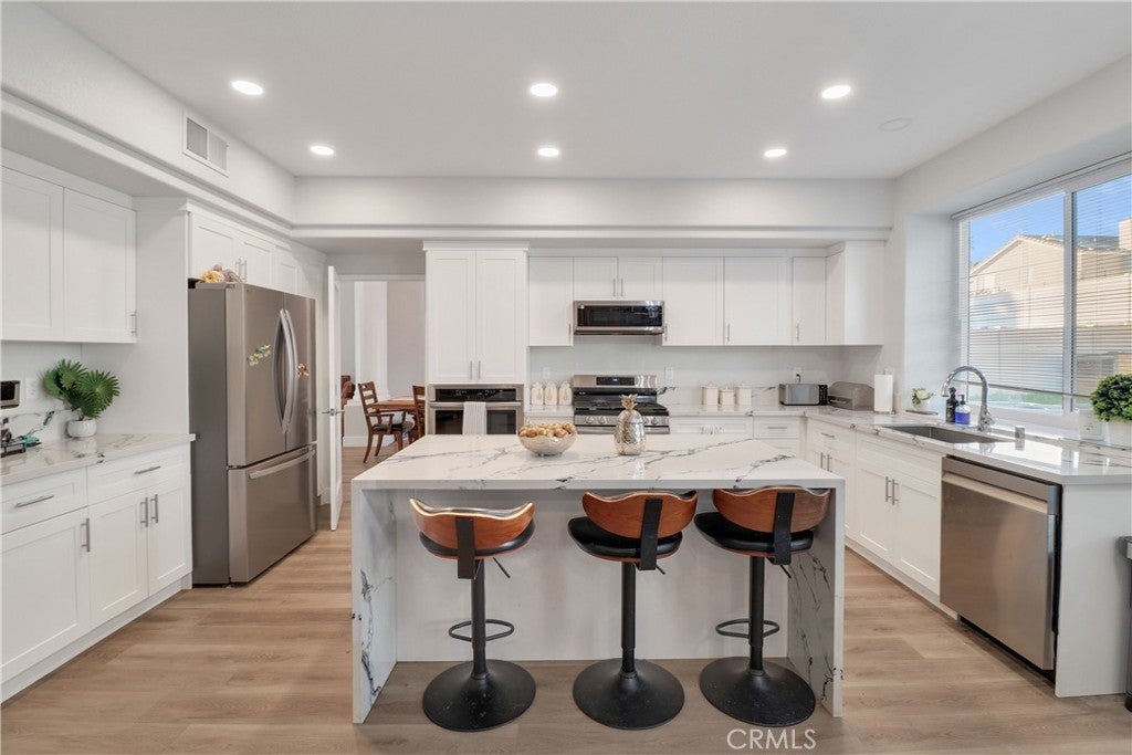 Welcome to this stunning, fully renovated, move-in-ready home offering the perfect combination of modern design, comfort, and quality craftsmanship. This super nice 4-bedroom, 2.5-bathroom residence has been completely updated from top to bottom and is ideal for buyers looking for a turn-key property with high-end finishes throughout. As you enter, you’ll immediately notice the bright and open layout, enhanced by all-new recessed lighting, fresh interior paint, and beautiful waterproof flooring that flows seamlessly throughout the home. New vinyl windows bring in abundant natural light while improving energy efficiency, and all new interior doors add a clean, modern touch. The heart of the home is the gorgeous, brand-new kitchen, thoughtfully designed for both everyday living and entertaining. It features elegant quartz countertops, a stunning waterfall island, new custom kitchen cabinetry, and a complete Samsung appliance package. The open concept kitchen connects perfectly with the living and dining areas, creating an inviting space for gatherings. Solar panels and battery have been installed to lower electric expense.