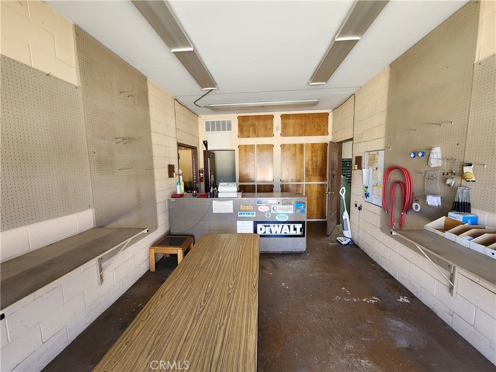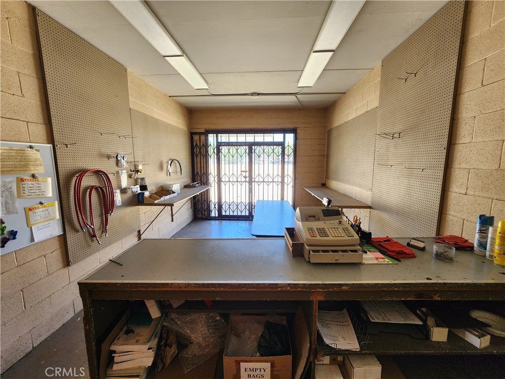Prime commercial building Zoned Mixed Use Village MU-V. Total site coverage 9% with concrete block and iron fencing surrounding the property, 200 amps of power and 240 volts, 35' ingress and egress, 15 or more parking spaces, 15' ceilings, 1 roll up door with 3 bays and additional office space with 2 restrooms, storage container, centrally located just off La Sierra and Hole