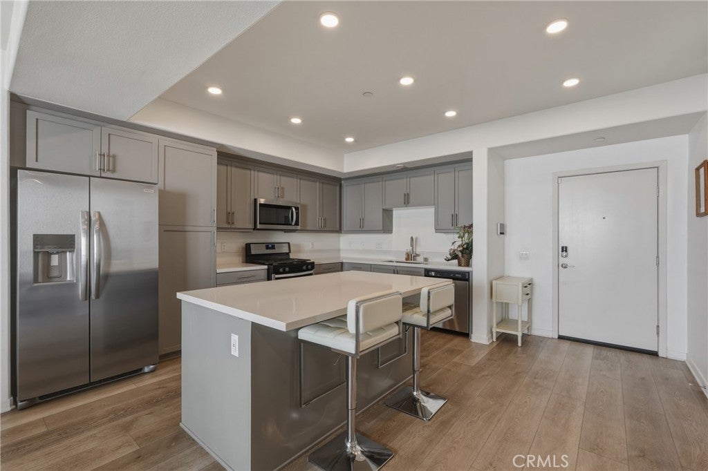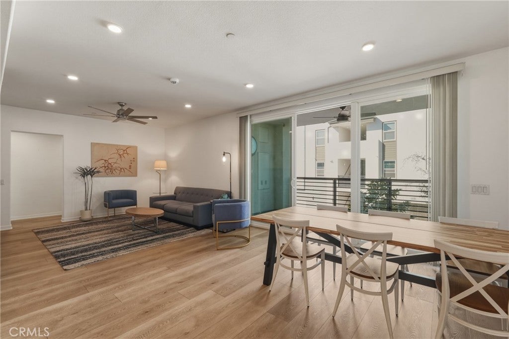 Experience elevated resort-style living at The Resort in Rancho Cucamonga. This beautiful turnkey single-level corner condo features an open floor plan with 3 bedrooms and 2 bathrooms. Built in 2020, this second-floor residence offers elevator access, vinyl flooring, recessed lighting, plantation shutters, and plenty of natural light throughout. The Kitchen showcases quartz countertops and a generous island, flowing seamlessly into the living and dining areas. Step onto your private balcony, perfect for morning coffee or evening relaxation that offers a views of the Club and mountains. The primary suite offers ensuite bath with dual sinks, walk-in shower, and walk-in closet. Enjoy a detached two-car garage with storage racks near the elevator and stairs. Unit is steps away from the exceptional community amenities, which include a media lounge, conference room, fitness center, clubhouse, pool, spa, BBQ areas, EV Charger, a dog-friendly park, and social community events on-site. With a local café and handcrafted tea/boba shops steps away, you won’t want to leave the Resort. This property is located near premier shopping, plenty of dining and entertainment options, the Toyota arena, Metrolink station, major freeways, and the Ontario International Airport.