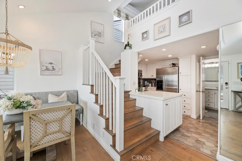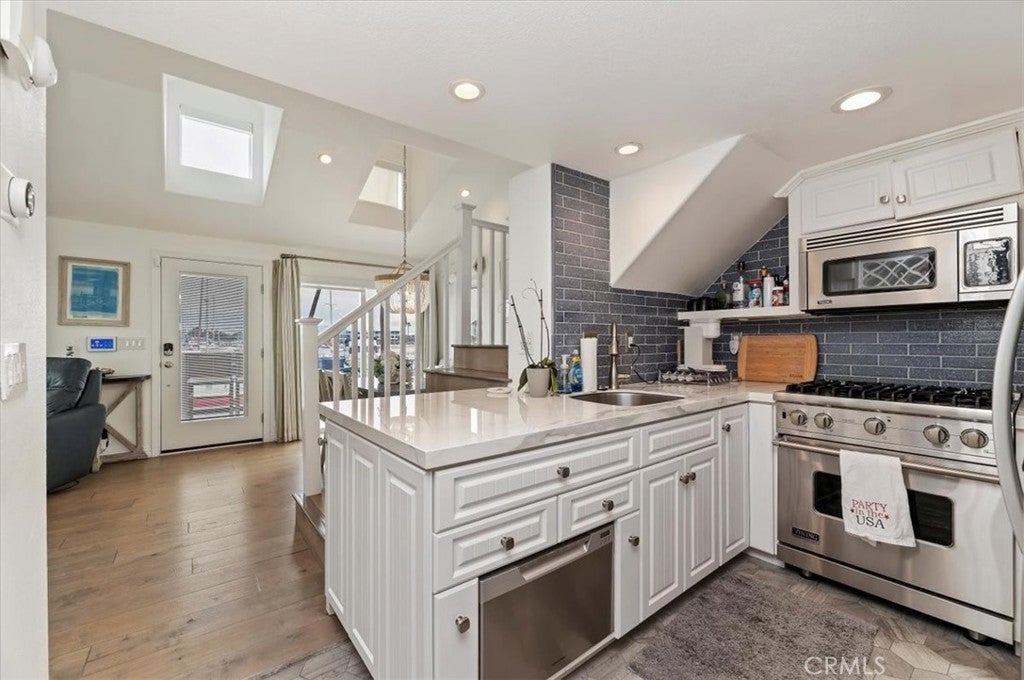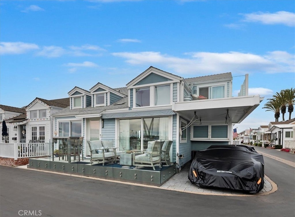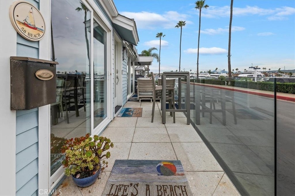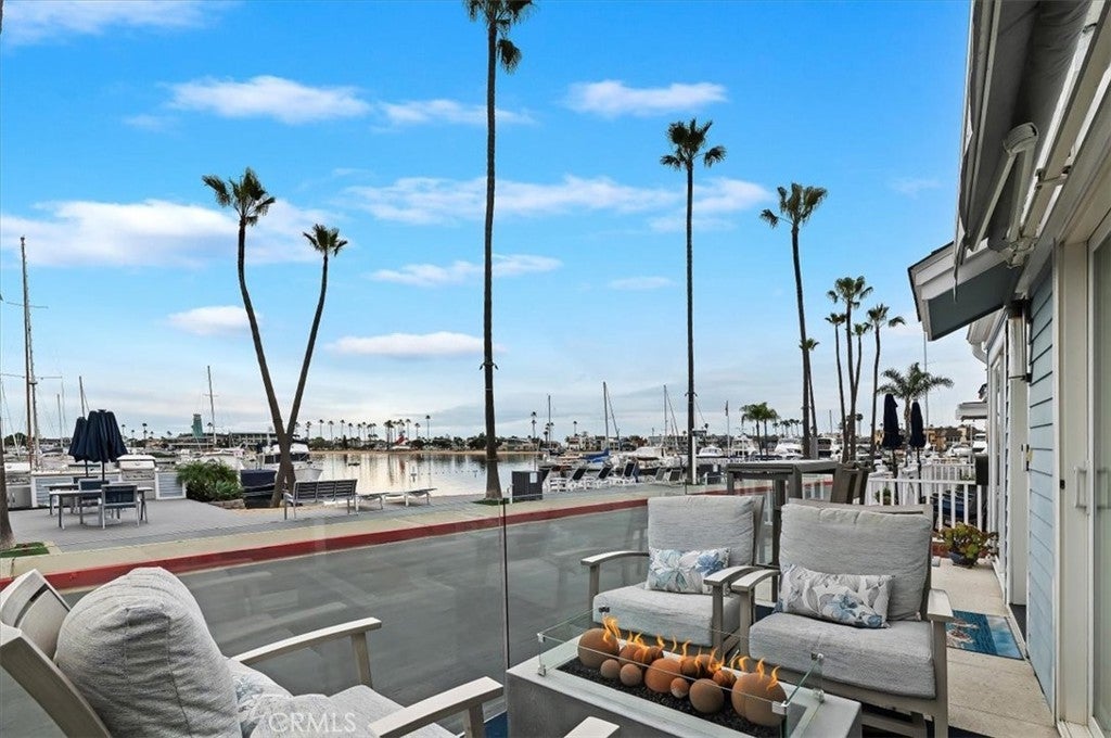 Wake up to shimmering bay views, salty ocean air, and the sound of water just outside your door. Located directly on the waterfront within the exclusive Lido Peninsula community, 58 Beach Drive offers a rare opportunity to own a true bayfront retreat in the heart of Newport Beach. This beautifully updated coastal residence is designed to embrace its setting, with expansive windows, vaulted ceilings, and an open living space that captures natural light and panoramic views throughout the day. The main living area flows seamlessly to the outdoor patio and elevated viewing deck with glass railings, creating the perfect backdrop for sunset dinners, morning coffee, and effortless entertaining. The interior blends clean, timeless finishes with relaxed beach-house style. The kitchen features white cabinetry, quartz countertops, stainless steel appliances, and a functional layout ideal for hosting. A built-in bar with an ice maker adds to the home’s entertaining appeal. Both bathrooms have been thoughtfully remodeled with designer tile, custom vanities, and spa-inspired details. The flexible floor plan includes two private bedroom suites, one on each level, offering ideal separation and privacy for guests. A bonus loft space provides room for a home office, reading lounge, or creative studio. Additional highlights include engineered wood flooring, LED lighting, central air and heat, electric window shades, copper plumbing, and generous storage throughout. Beyond the home, enjoy access to an unmatched lifestyle: private beach, community pool and spa, fitness center, clubhouse, kayak storage, and security patrol. Boat slips are available nearby for lease. Just moments away are the boutiques, dining, and energy of Lido Marina Village and the Newport boardwalk. This is not just a home — it’s a daily vacation in one of Southern California’s most coveted waterfront settings. Land lease $6,764/ month