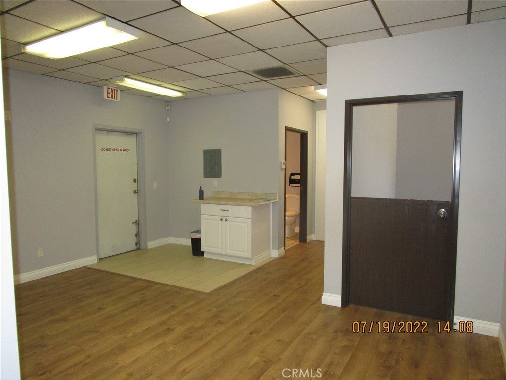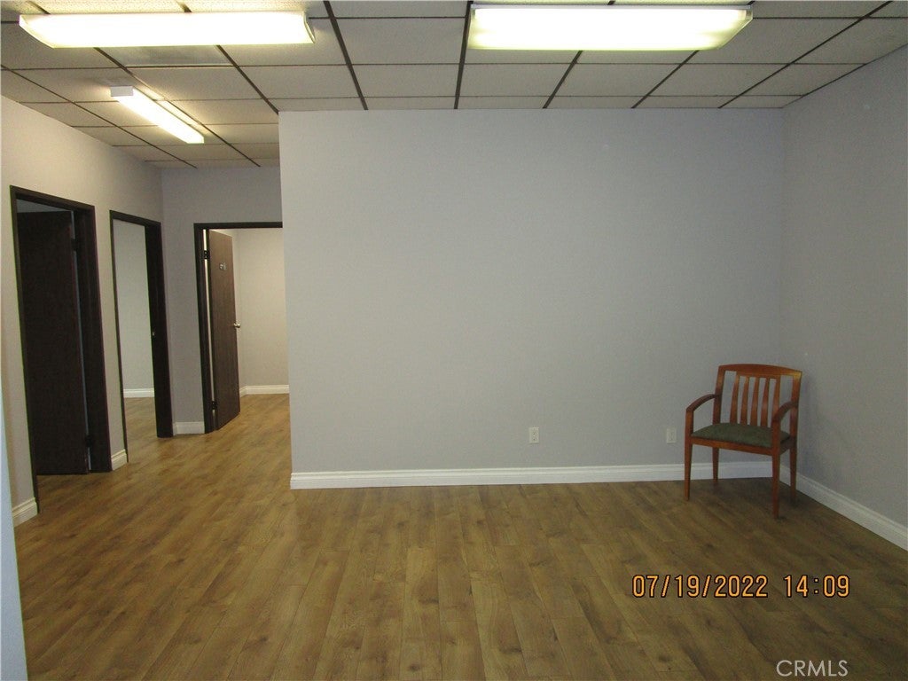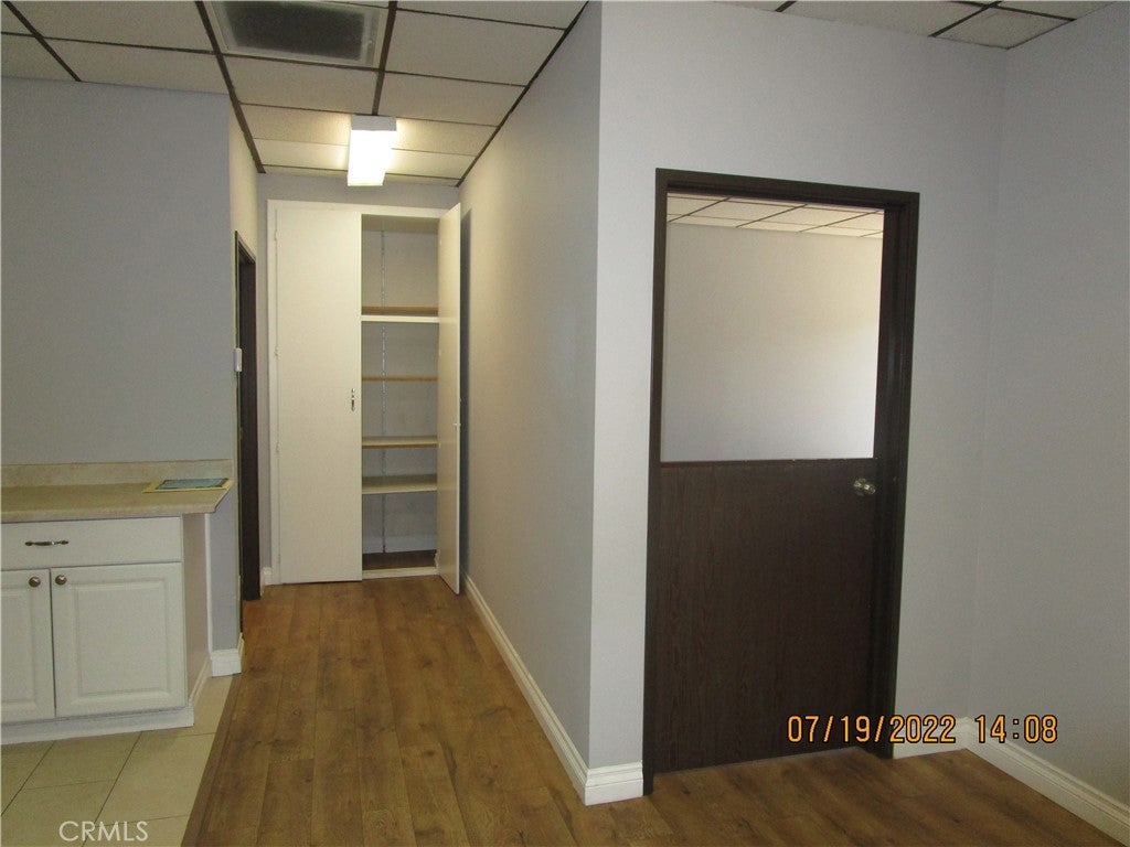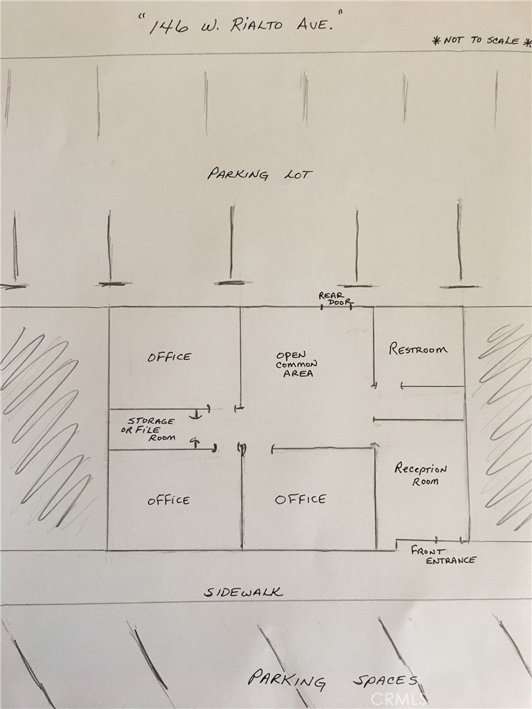Downtown Rialto. Newer building. No Tenant improvements needed. Landlord has completely renovated interior with new paint, laminate flooring, baseboards, cabinets, and refurbished bathroom with vanity, mirror, flooring and fixtures. The 1100 sqft includes: reception room, 3 LARGE offices, common open area room, separate storage/file room, storage cabinet area, & bathroom. Parking in front of office and plenty of parking in parking lot behind building. Neighboring suite on left is certified CPA and on right Financial accountants. Situated within 2 blocks of post office, police department and fire department. See floor plan in supplement section. Pictures do not compliment the size of each office suite and reception room. Must see. *** Tenant pays for electric, gas, internet, cable, trash.*** Landlord charges for gardener, outside parking lighting and water @ $125 monthly C.A.M. This unit has 2 assigned parking spaces behind building at rear door and 2nd row of extra public parking available for clients/employees.