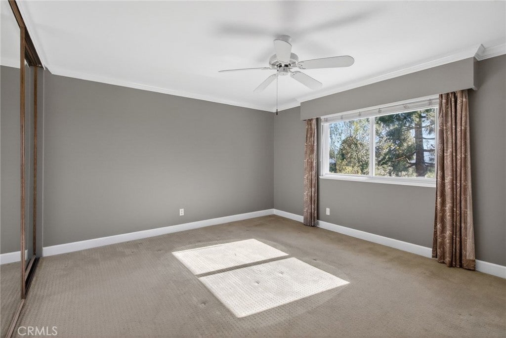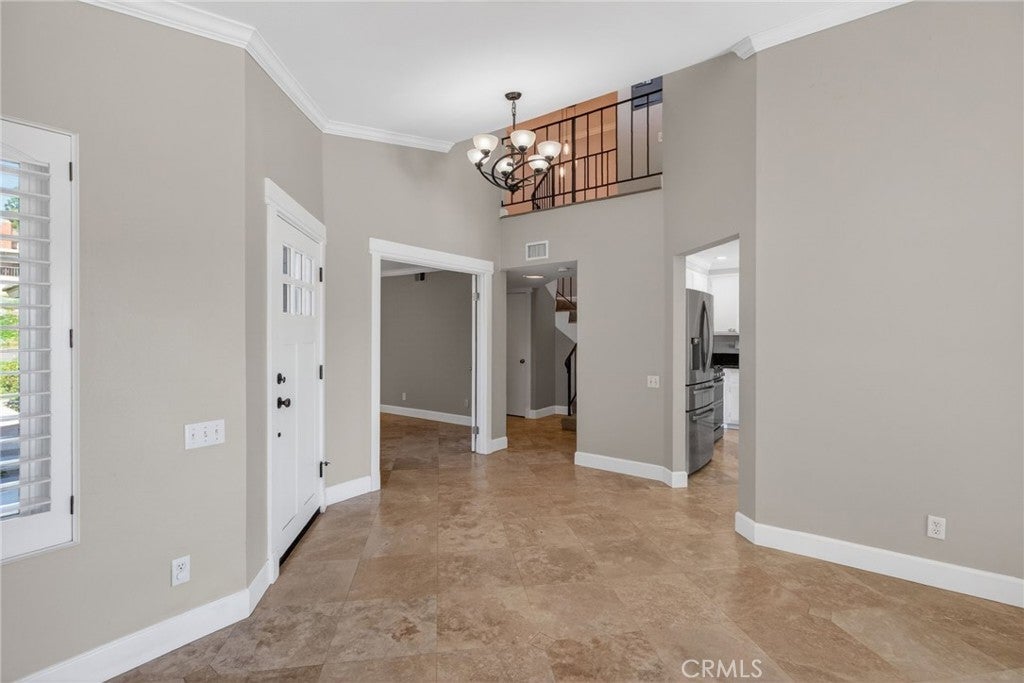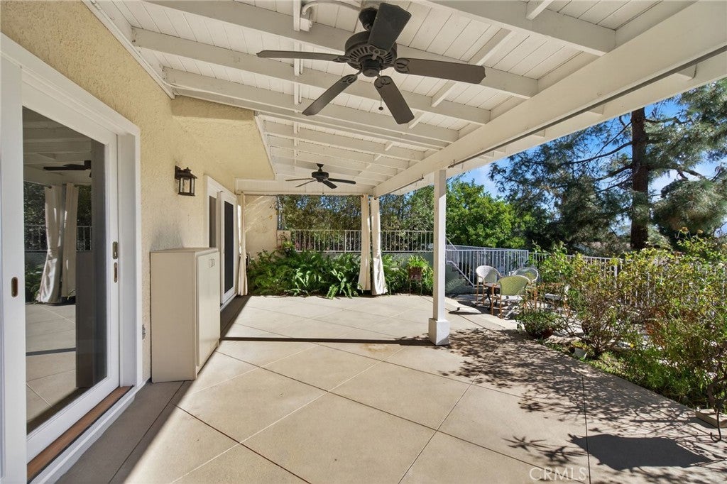 Perched in the desirable Yorba Linda Hills, this beautifully remodeled residence is tucked away on a quiet, single loaded cul-de-sac with sweeping hillside views. Bright roses and whimsical perennials grace the private courtyard entry of this 3 bedroom/3 bathroom home. Just inside the front door, the living room offers vaulted ceilings, abundant natural light, and vistas of the city below in the distance. The adjacent remodeled kitchen and family room spaces are also enhanced by the arresting views. A downstairs bedroom, currently optioned as an office, and a ¾ bathroom complete the first floor. Upstairs, the mezzanine hallway serves the secondary and primary bedroom; both boasting updated ensuite bathrooms. While the primary bedroom’s key focal point is the captivating view, the remodeled en suite bath and dual closets with organizers are also of note. Outside, dual sliders open to the shaded patio where sweeping views over Yorba Linda dominate the background, and a manicured rose garden surrounds the foreground. Conveniently located near major freeways, highly lauded schools, and retail amenities. A unique opportunity to own this turnkey home overlooking Yorba Linda.