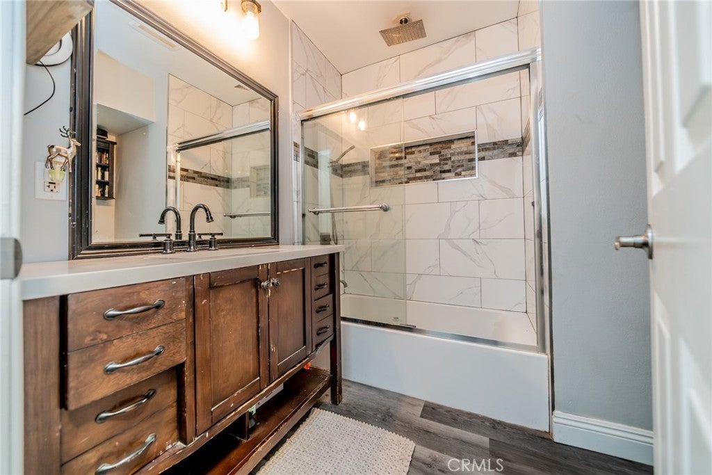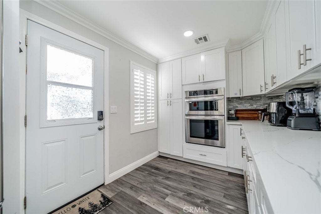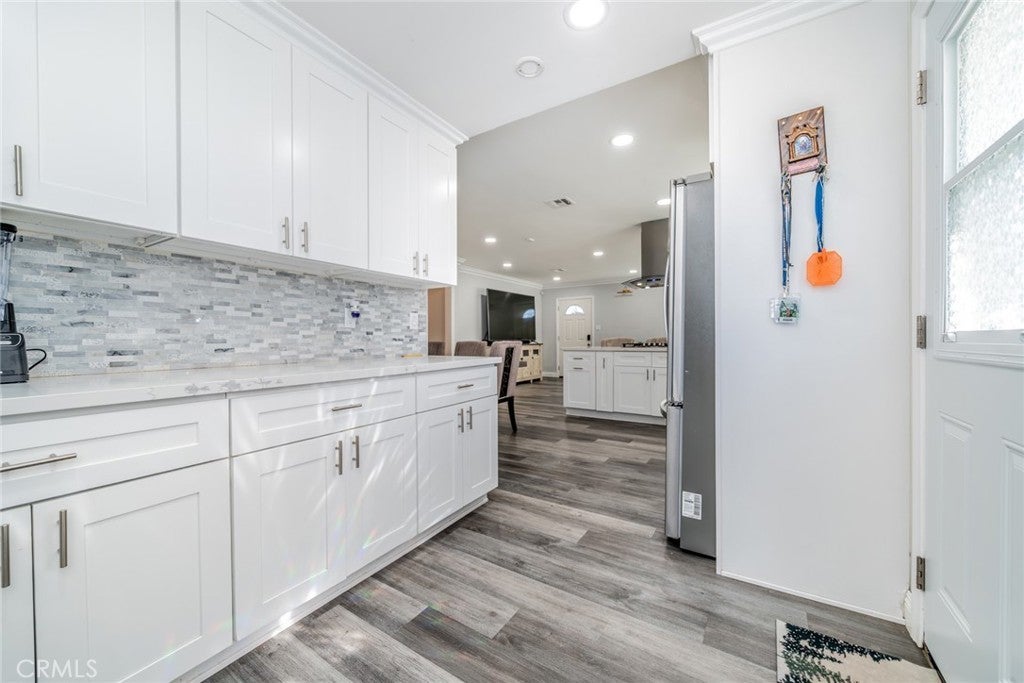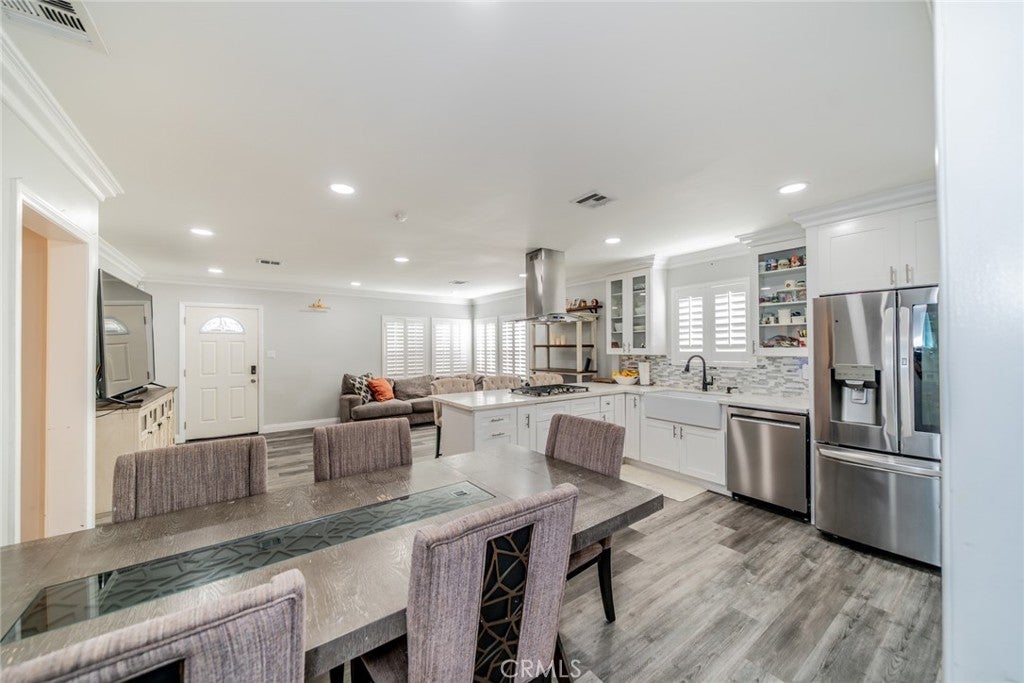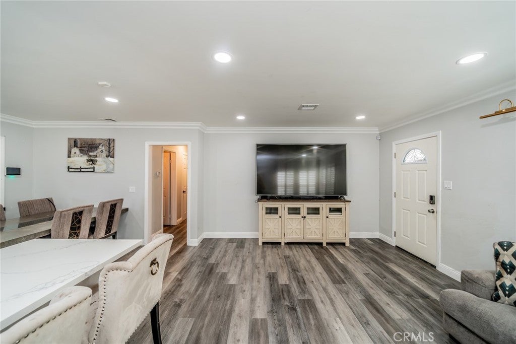 Beautiful updated 3 bedroom 1 Bathroom single story home, situated on a desirable corner lot. This turnkey property features wood look flooring throughout, elegant plantation shutters, creating a warm yet sophisticated ambience. The modern kitchen is equipped with stainless steel appliances, a convection oven, quartz countertops, a sleek cooktop and a charming farmhouse porcelain sink, with an open floor plan perfect for everyday living and entertaining. Bedrooms are very spacious, But the biggest highlight of this property is the exceptional oportunity and bonus the fully upgraded Garage conversion offers. garage has being converted to a full ADU with beautiful full kitchen with modern cabinetry and counter tops built in island tile flooring, full bathroom and a private bedroom making it ideal for extended family, guests or rental income. A rare opportunity to own a stylish, move in ready home with built in versatility and value. make this your new home!!!!!!!!!