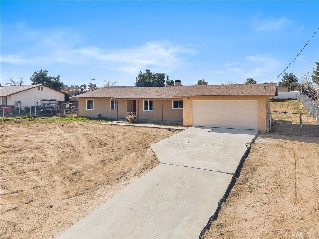 Welcome to this well-maintained 3-bedroom, 2-bathroom single-story home situated on a large, flat, fully usable lot—a true standout in today’s market. The property offers a practical and versatile layout that includes a separate family/bonus room, ideal for a home office, playroom, gym, or additional living space. Inside, the home features fresh interior paint, wood-style flooring in the main living areas, tile flooring in the kitchen and dining area, and a classic brick fireplace that anchors the living room. The open living and dining spaces provide a functional flow, while the kitchen offers ample cabinet space, tile countertops, gas range, dishwasher, and a breakfast bar. A sliding glass door provides direct access to the backyard for easy indoor-outdoor living. The floor plan is efficient and well laid out, with generously sized bedrooms, a primary bedroom with its own bathroom, and a clear separation between living and sleeping areas. Outside is where this property truly shines. This HORSE PROPERTY has an expansive flat lot, fenced, and fully usable, offering endless possibilities for RV parking, toys, animals, gardening, a workshop, or future improvements. A long driveway and attached two-car garage provide ample parking and accessibility. A storage shed adds extra convenience. Recent improvements include a brand-new septic tank and water heater, eliminating a major future expense and providing peace of mind. Conveniently located near shopping, dining, schools, and with quick access to the 15 Freeway, this home delivers space, flexibility, and long-term value -an ideal opportunity for buyers seeking room to grow in Hesperia.