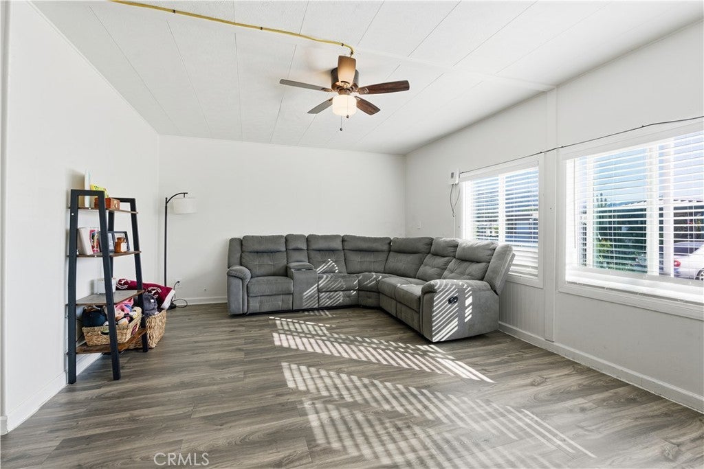 Located in a desirable all-age community mobile home park. This cozy and comfortable mobile home offers affordable living. Upgrades well maintained 2 bedroom and 2 bath mobile home with New laminate flooring, tons of kitchen cabinet space and New Fans throughout the home. Situated in a clean gated family-friendly park with a pool, playground, clubhouse and recreation areas. Conveniently located near freeways, shopping, and restaurants, this move-in-ready gem is the perfect blend of comfort, style, and easy living – don't miss your chance to make it your own. Move-in ready!! Sale as-is.