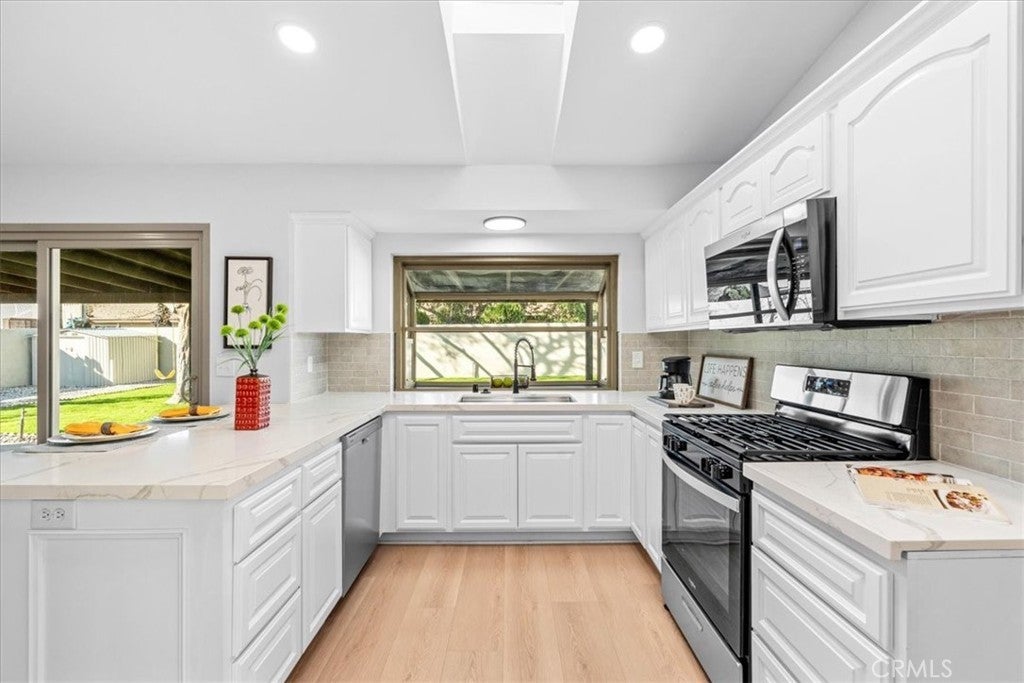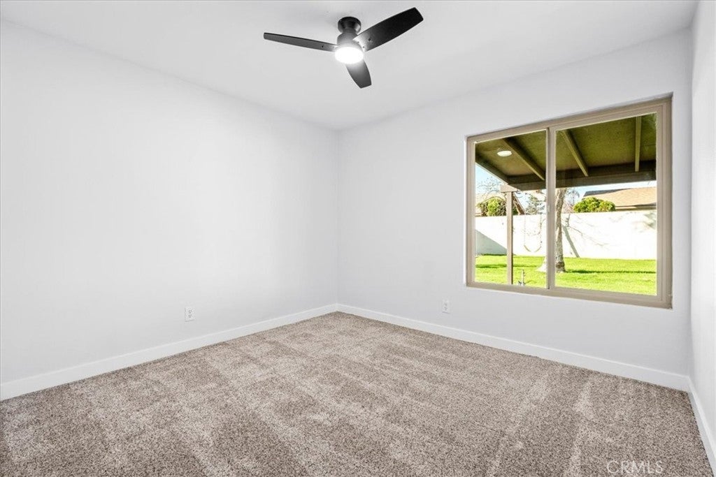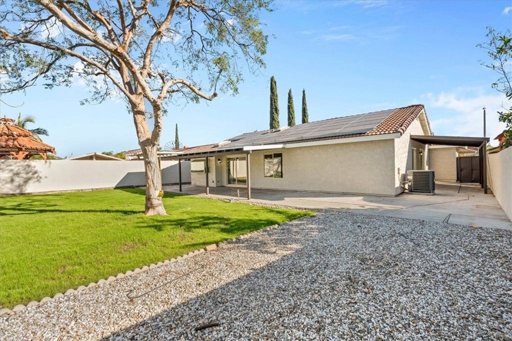 Welcome to this exquisitely remodeled, rare 4-bedroom single-story residence, thoughtfully designed for refined modern living. Completely turnkey, this home features fresh interior and exterior paint, dual-pane windows, and fully paid-off solar, offering both elegance and efficiency. The stunning open-concept kitchen is the heart of the home, showcasing crisp white cabinetry, sleek quartz countertops, and brand-new stainless steel appliances. Designer finishes, new wood-look flooring, plush carpeting in the bedrooms, and all-new baseboards and casing create a cohesive, sophisticated aesthetic throughout. Generously sized bedrooms provide a sense of comfort and retreat, while the beautifully refreshed bathrooms feature quartz countertops and contemporary details. Large indoor laundry. Expansive front and back yards, complemented by a covered patio, offer endless possibilities for entertaining or creating a private outdoor oasis. Enjoy the added benefits of no HOA, a low tax rate, and exceptional value in one of the area’s lowest priced homes.