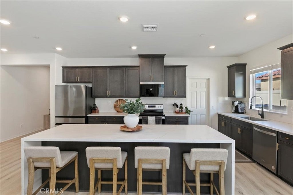 * * * BEAUTIFUL Single Story 3 Bedroom Open Concept Home Built in 2023 * * * This Immaculate Remodeled Home has such a Great Layout with 3 Bedrooms, 2 Baths, 1746 Sq. Ft. with 2 Car Garage and Solar. Upon entry there is a Foyer leading to the Family Room with a Custom Venetian Plaster Fireplace, huge Dining Area overlooking the Fully Remodeled Kitchen with Granite Countertops, Upgraded Cabinetry and Stainless Steel Appliances. Luxury vinyl flooring throughout the main living area of this home. The Primary Bedroom has a large closet with a private Bathroom and walk-in shower. The 2 Car Garage has lots of room for storage and has a dedicated power source to plug in an Electric Vehicle. The Backyard has lots of privacy with freshly poured concrete and artificial turf, perfect for entertaining and lots of room for the kids to play. No HOA.