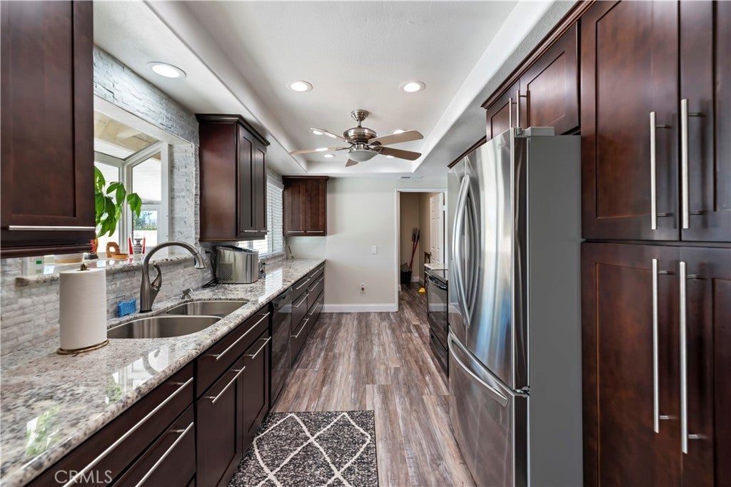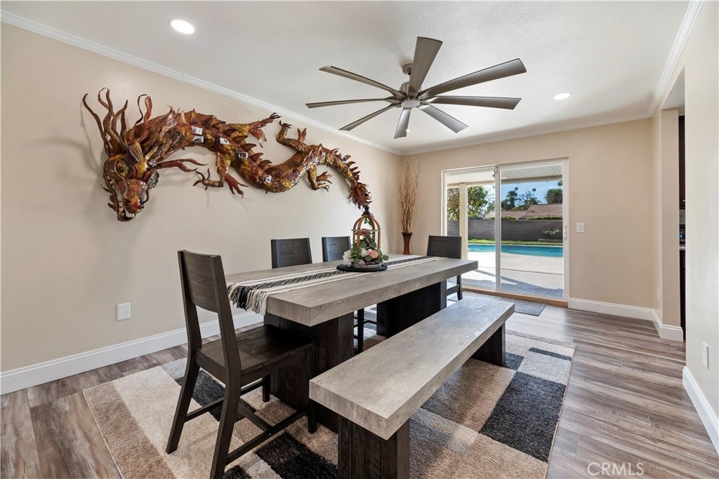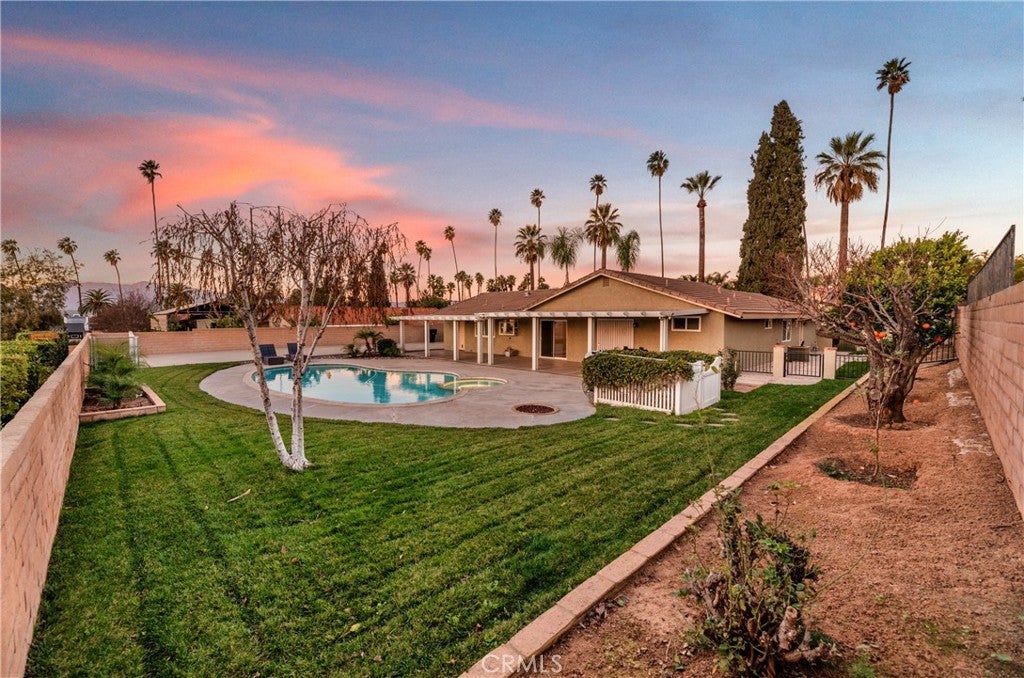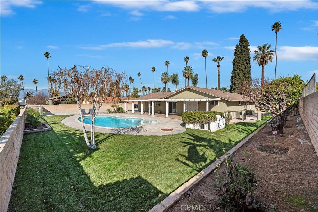 Located in the prestigious Hawarden Hills neighborhood of Riverside, this single story pool home offers a blend of classic charm and modern updates across 1834 square feet of living space. This single story floorplan features 3 spacious bedrooms and 2.5 bathrooms on an expansive 14,375 sq. ft. lot. Recently remodeled in 2022 showcasing a gourmet kitchen with custom cabinetry, granite countertops, stylish backsplash, and recessed lighting, large windows provide a scenic view of the lush back yard and pool. A formal living room and separate formal dining room provide ample space for entertaining. The cozy family room is anchored by an elegant fireplace. This home is equipped with double-pane windows, crown molding, ceiling fans and a separate individual laundry room. The back yard is built for entertainers with a private oasis featuring a sparkling in-ground pool and spa. Outdoor amenities include a large Alumawood patio cover, grassy areas, new pool equipment, and mature orange trees. The two car attached garage is built out and includes extra storage, plus a wide driveway with significant room for RV and boat parking and 220 hookups. This home is situated just off historic Victoria Avenue, providing easy access to the 91 freeway, steps away from walking trails along the Gage cannel, and within walking distance of high preforming schools in the Riverside Unified School District (Poly High School District, Gage Middle School, Washington Elementary) and close to all local shopping and dining. All that's missing is you!