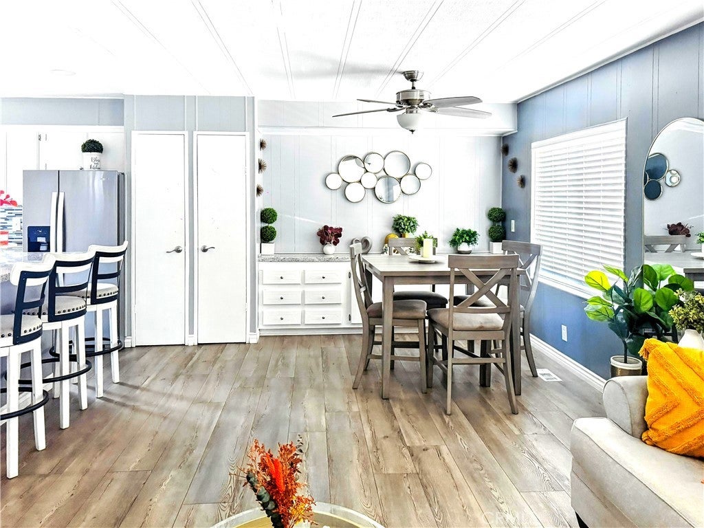 **Charming & Spacious three-Bed, two-Bath Mobile Home in a Gated Community for All ages* Don’t miss this beautifully maintained mobile home located in a peaceful, family-oriented park. This move-in ready home offers the perfect blend of comfort, style, and functionality. *Kitchen: The open-concept layout boasts modern finishes, including wood-style flooring, a stylish two-tone kitchen with granite countertops, a large island, and stainless steel appliances. The living and dining areas are filled with natural light, perfect for family gatherings or entertaining guests. *Functional laundry area with upper cabinets for storage * Bedrooms: The spacious primary bedroom features elegant furniture and a rich accent wall for a luxurious touch. Two additional bedrooms are thoughtfully designed—with fun and colorful themes. * Bathrooms: Enjoy two full bathrooms, each tastefully updated with stylish vanities, floral shower curtains, and modern fixtures. * Laundry Area: Dedicated laundry space with upper cabinets for extra storage and a washer/dryer setup that makes everyday chores a breeze. *Backyard & Outdoor Living: Step into your private backyard retreat with low-maintenance artificial turf, a paved patio, and a covered porch—perfect for entertaining or relaxing. The large front and side porches offer plenty of space for kids to play or to store toys and scooters. *Interior Features: Wood-style flooring throughout Ceiling fans in bedrooms Decorative wall colors and accent décor Ample storage and cabinet space * Community & Parking: Located in a well-kept mobile home park Convenient off-street parking Close to schools, shopping, and major freeways *Location: Tucked in a quiet cul-de-sac with beautiful views of surrounding mountains and just minutes from all local amenities. *Schedule your showing today and make this beautifully cared-for home yours!