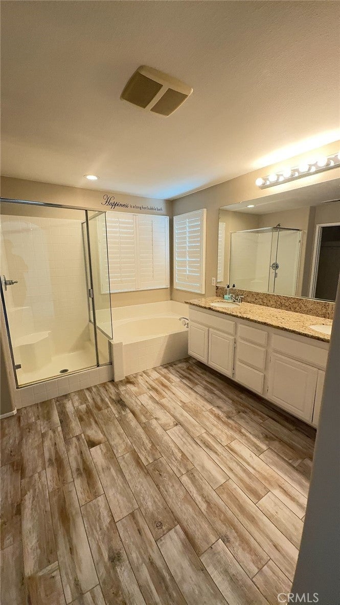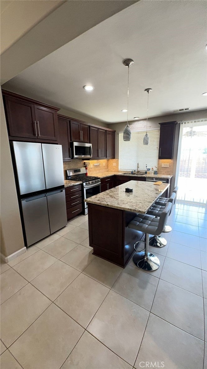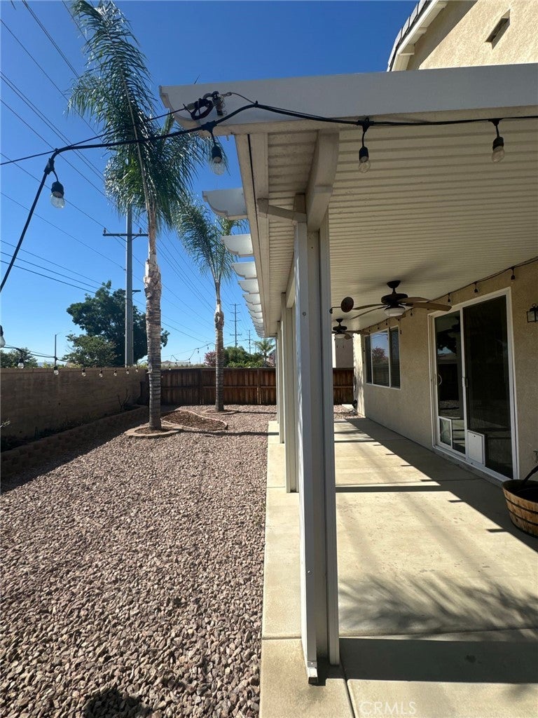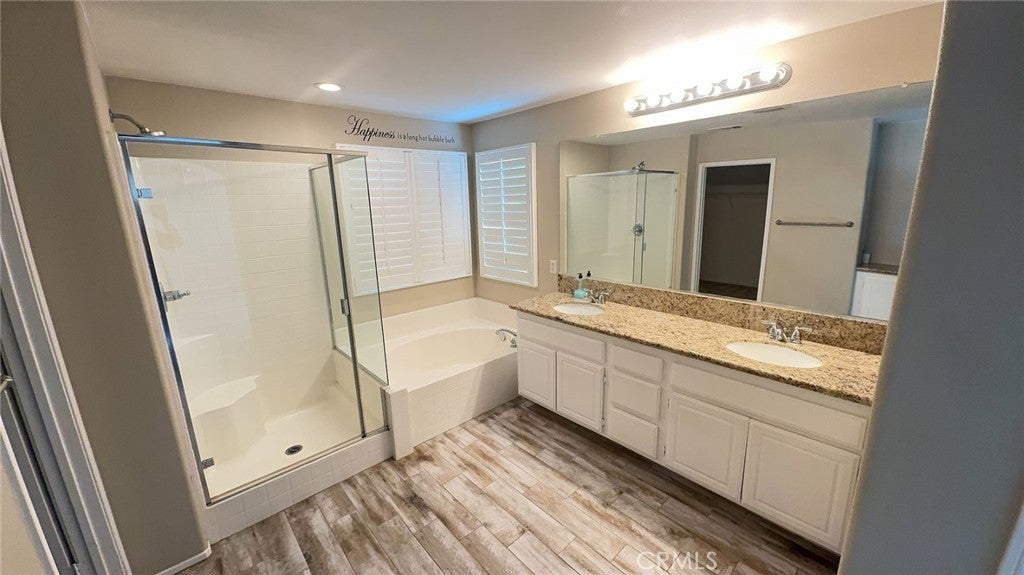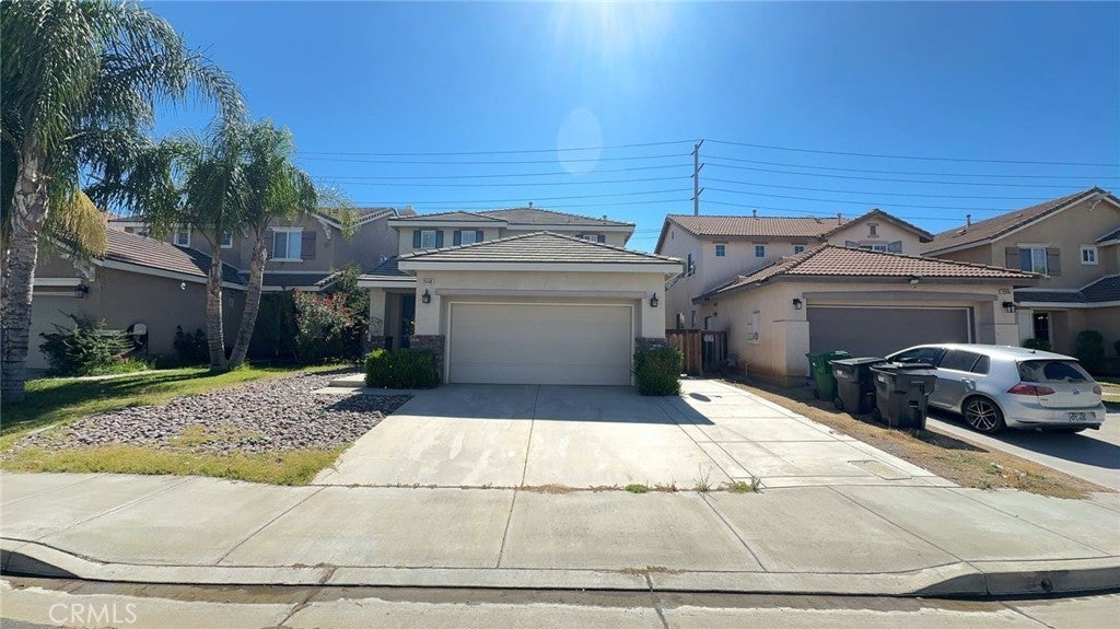 Don’t miss this beautifully updated, home located in the desirable Menifee Greens neighborhood with drought-tolerant landscaping for easy maintenance and long-term savings. Inside, the open-concept layout is enhanced by soaring ceilings and abundant natural light. The main floor welcomes you with a generous living and dining area that seamlessly flows into a modern chef’s kitchen, equipped with granite countertops, soft-close cabinetry, stainless steel gas appliances, and a spacious center island perfect for entertaining. The adjacent family room features a cozy gas fireplace and built-in media niche, creating a warm and inviting atmosphere. A flexible downstairs room—ideal as a home office, guest suite, or den—is located next to a convenient half bathroom. Upstairs, you'll find a full-size laundry room with built-in storage and a granite folding counter. The three bedrooms include a Jack-and-Jill setup with dual sinks, and the primary suite is a true retreat, offering a large walk-in closet, dual vanities, a soaking tub, and a separate walk-in shower. Stylish plantation shutters, coordinating granite surfaces, and ceiling fans add a polished touch throughout the home. Outside, enjoy relaxing under the extended alumawood patio cover with two ceiling fans, perfect for entertaining. The finished garage comes complete with epoxy flooring, wall cabinets, and overhead storage. Located just minutes from schools, shopping, restaurants, and quick freeway access to the I-215, this home combines comfort, style, and practicality in one fantastic package.