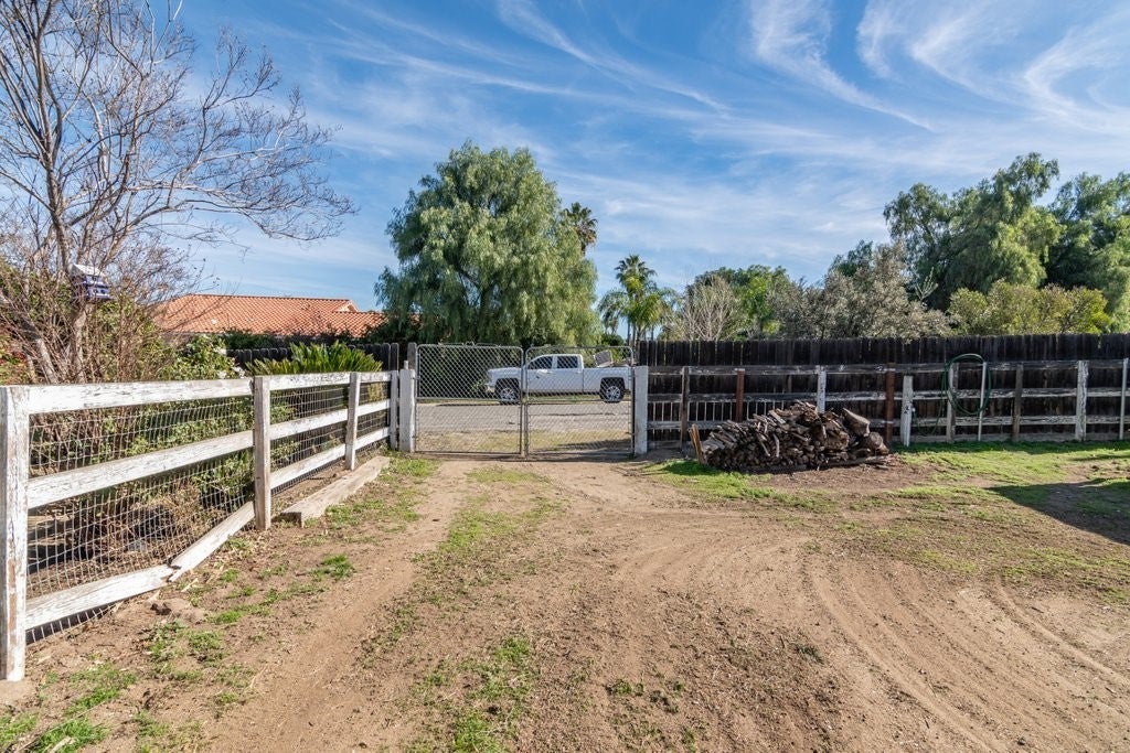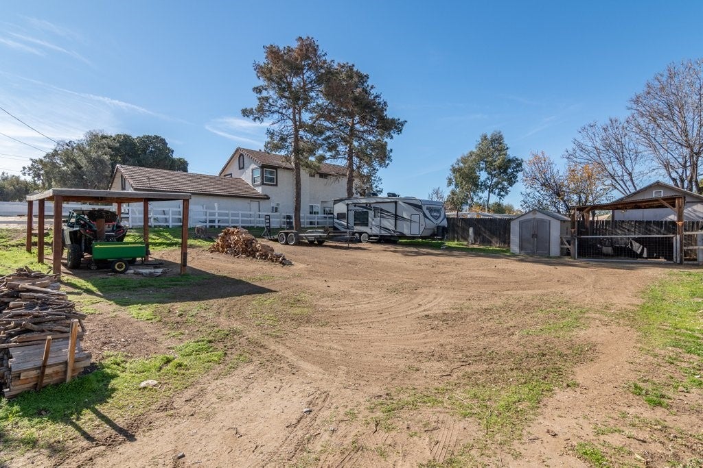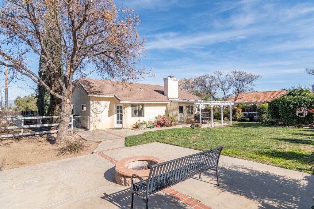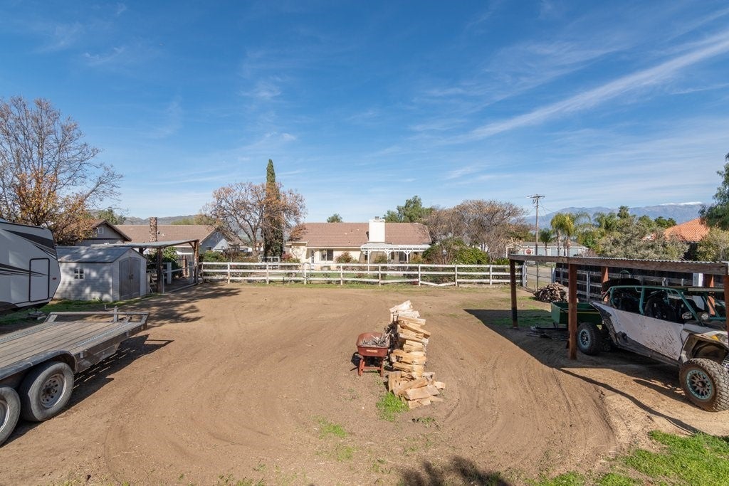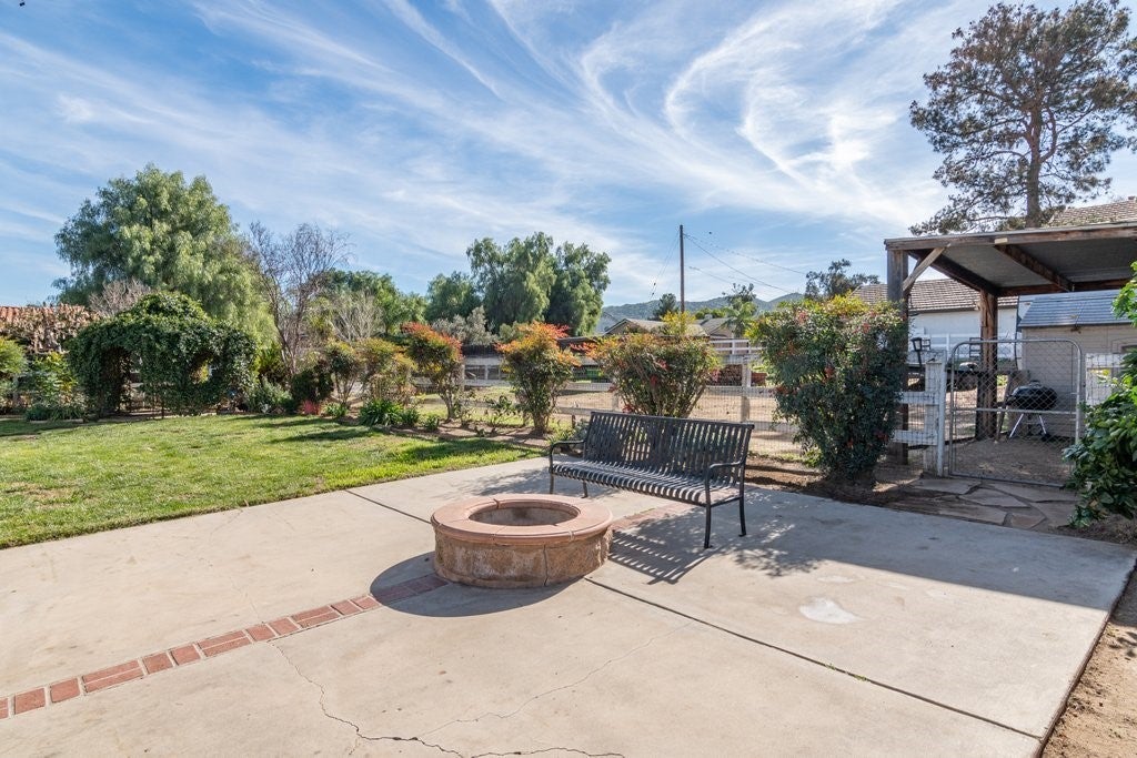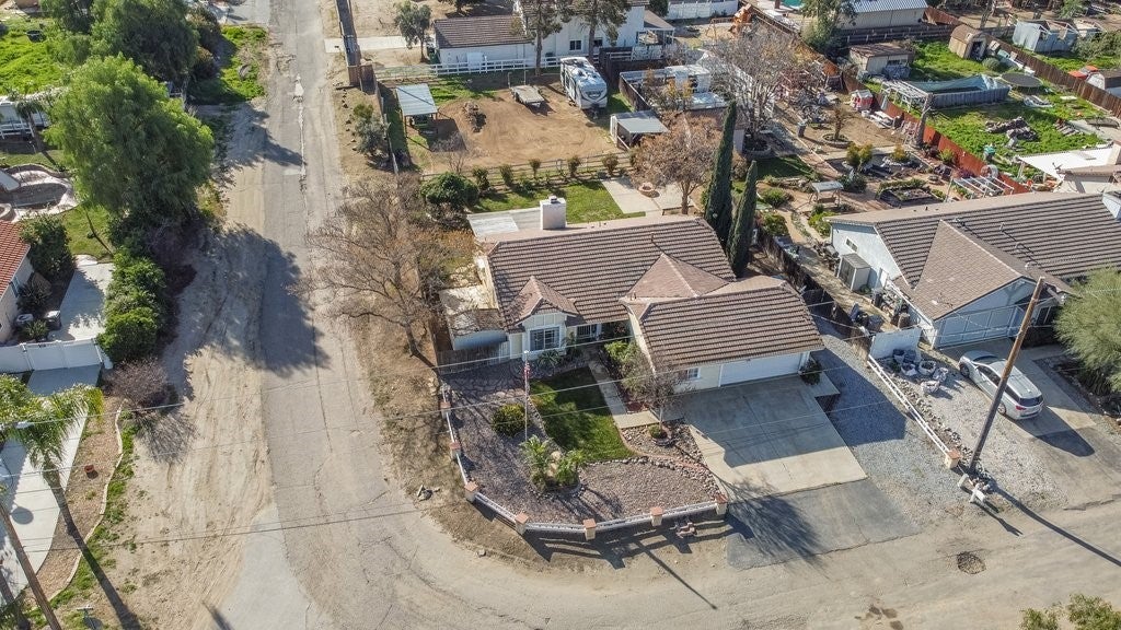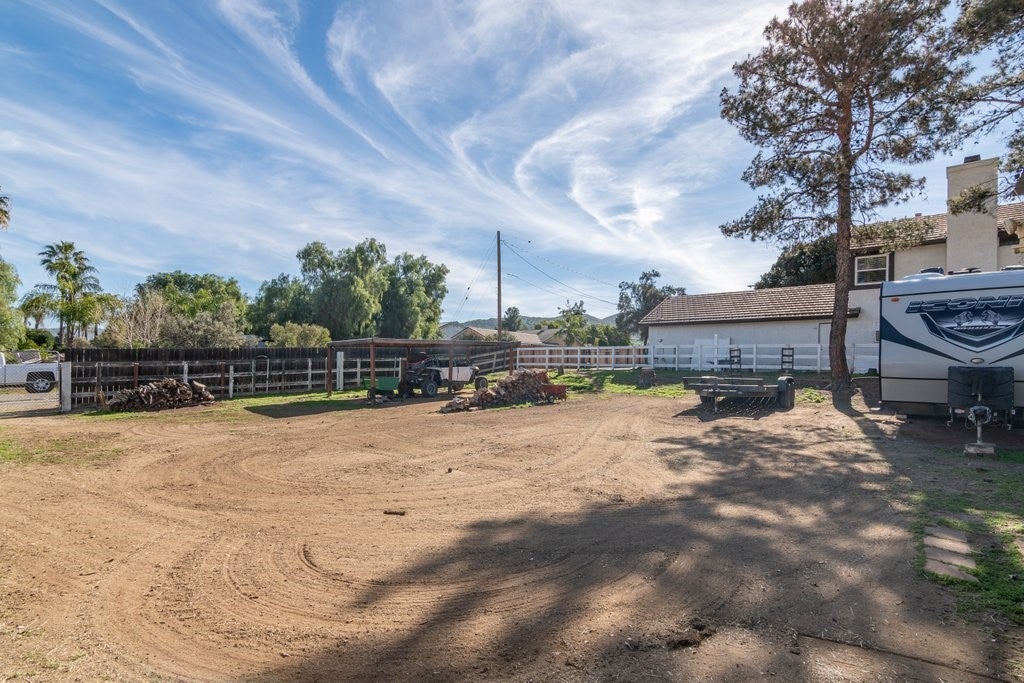 Welcome to this charming single-story home in Nuevo, offering privacy, space and accessibility for your toys. Upon entry you're greeted by a family room and dinning room featuring vaulted ceiling and tile flooring throughout. Kitchen offers plenty of cabinet space and granite countertops. Just off the kitchen, you'll enjoy a warm and inviting living room anchored by a wood/gas fireplace, vaulted ceilings, and tile flooring that flows into the dining area. Home features 4 bedrooms (public record shows 3bedrooms sellers purchased home with 4th bedroom in place), providing flexible living options. Enjoy starry nights in the large back yard with covered patio and built in fire pit with plenty of room on both sides. The corner lot offers convenient RV access that allows you to pull through to the rear of the property. This home is a must see.