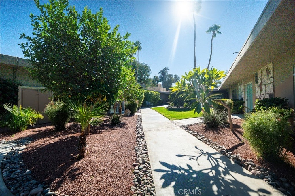 Welcome home to this beautiful, dual primary suite, mid century modern condo located on the 10th fairway of the gorgeous, history rich Bermuda Dunes CC. This property offers gracious living, with the kitchen open to the great room which overlooks the exquisite golf course and water feature view. This condo offers full-size washer and dryer, one car detached garage as well as an attached golf cart garage, which is shared with a neighbor. HOA dues cover all utilities, except electric, pool and landscaping maintenance as well as roof and septic. Cable TV and Internet are also included.
