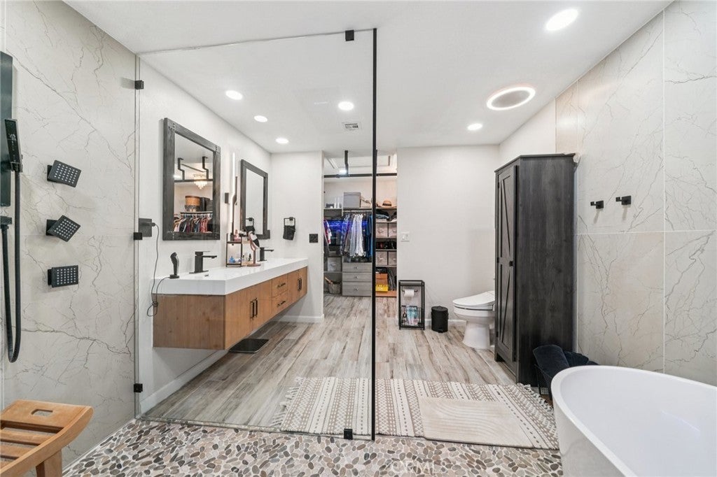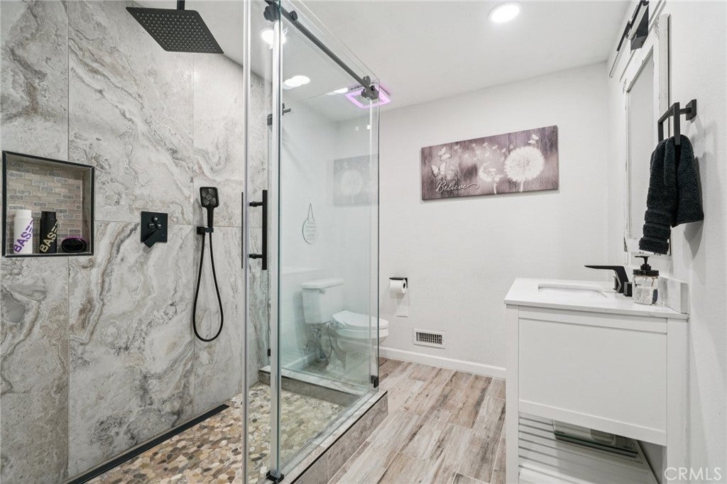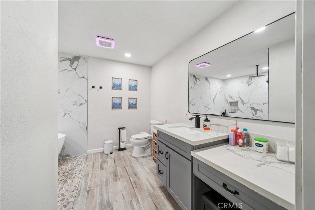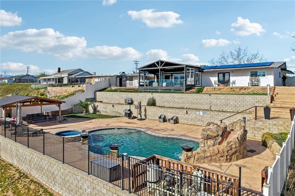 Welcome to a home that doesn’t just impress — it captivates. From the moment you arrive, you’ll feel it: this is truly one of a kind. Homes like this don’t come available often. Every inch has been thoughtfully designed, meticulously upgraded, and beautifully curated to create an experience — not just a place to live. This modern, show-stopping residence is packed with premium features, including owned solar plus a prepaid solar lease, a powerful 26kW battery system, Tesla EV charger, tankless water heater, and a full PEX repipe — delivering next-level energy efficiency, comfort, and peace of mind. A 16-camera ADT security system ensures top-tier safety throughout the property. Step inside to find sleek ceramic tile throughout, expansive living spaces, and three generously sized bedrooms, each designed as a private retreat. The spa-inspired bathrooms feel straight out of a luxury resort, featuring multi-shower heads, soaking tubs, and walk-in showers that invite you to unwind and recharge. But the magic truly unfolds outdoors. Your backyard is a private resort oasis, showcasing an oversized in-ground pool and jacuzzi built in 2023, a gazebo perfect for entertaining, and an oversized covered patio with breathtaking panoramic city-light views. As the sun sets, the atmosphere becomes unforgettable — perfect for hosting unforgettable gatherings or enjoying peaceful evenings under the stars. A convenient exterior guest bathroom makes poolside entertaining seamless. Even the garage is elevated, complete with laminate flooring and a mini-split A/C and heating system, creating flexible space for a gym, studio, or luxury workspace. This home screams entertainment, relaxation, and elevated living. It’s the kind of property that makes people linger… and fall in love. You truly have to experience it in person — because once you arrive, you won’t want to leave. Trust me.