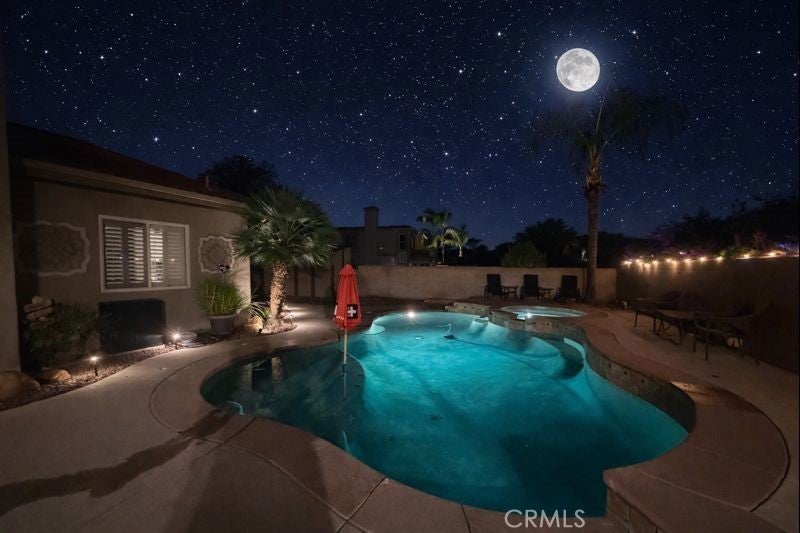 Welcome to an exceptional residence in the highly sought-after Whisper Ranch community of Yucaipa, where refined living and effortless entertaining come together beautifully. Ideally located within walking distance to Wildwood Elementary School, this stunning four-bedroom, three-bathroom home offers an open, airy, and light-filled floor plan designed for both comfort and sophistication. The heart of the home is a spacious, entertainer’s kitchen featuring gas appliances, Corian countertops, abundant cabinetry, and a seamless flow into the main living areas. All kitchen appliances are included, and plantation shutters throughout add timeless elegance while enhancing natural light. Upstairs, the private primary suite is a serene retreat, complete with a private balcony, a generous walk-in closet, and a spa-inspired bath with a soaking tub—the perfect space to unwind after a day of hosting or relaxing poolside. Guest bathrooms have been thoughtfully updated with modern finishes. Designed with entertaining in mind, the backyard is a true resort-style escape. Enjoy an in-ground pool and spa, a cozy fire pit, and a fully built-in outdoor kitchen equipped with a griddle, barbecue, mini refrigerator, and television—ideal for hosting gatherings, game days, or evening celebrations. An Alumawood patio cover provides shade and comfort, creating a year-round outdoor living experience. Additional luxury amenities include RV parking, a three-car garage, a storage shed, a newer HVAC system installed in 2020, and a financed solar system with a low monthly payment of $157.12, offering both efficiency and long-term value. This remarkable home delivers the perfect balance of upscale living, thoughtful design, and unparalleled entertaining spaces in one of Yucaipa’s most desirable neighborhoods. Additional photos coming soon.