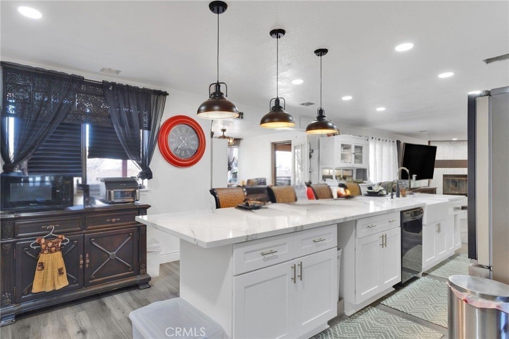 Welcome to this beautifully updated 3-bedroom, 2-bath Apple Valley home offering comfort, functionality, and energy efficiency. The remodeled kitchen is a true showstopper, featuring a 36” range, farmhouse-style deep sink, pot filler above the cooktop, built-in microwave, and ample cabinetry—perfect for everyday living and entertaining. Recent upgrades include new carpet, new septic system, updated fireplace, and new ceiling fans in every room. The spacious primary suite offers a walk-in closet and plenty of storage throughout the home. A dedicated laundry room with washer and dryer included adds everyday convenience. Outside, enjoy a fully enclosed backyard with block wall fencing, two covered patios, a oversized shed and a fully functioning 7-seat Jacuzzi—ideal for relaxing or hosting. The property also boasts a 3-car garage with workshop area, a large covered carport, and 14 paid-off commercial solar panels for long-term energy savings. This home truly has it all—space, upgrades, and value. A must see!