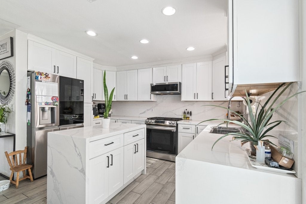Single-story home POOL home features 3bedrooms 2 baths. As you walk into the entryway you will find a fully remodeled kitchen with white cabinets quartz countertops, center island, stainless steel appliances and recessed lighting throughout. Tile flooring throughout the home. Guest bathroom has modern finishes. Primary bedroom features bathroom and large walk in closet. Home is on a spacious lot with gated driveway that brings you into the pool which was recently re-plastered. This backyard has plenty of room to entertain or to store your toys. Whether you’re looking for move-in ready comfort or room to expand, this home offers a rare opportunity to create your perfect space. Don’t miss out! Come tour today and see for yourself why this home could be yours.