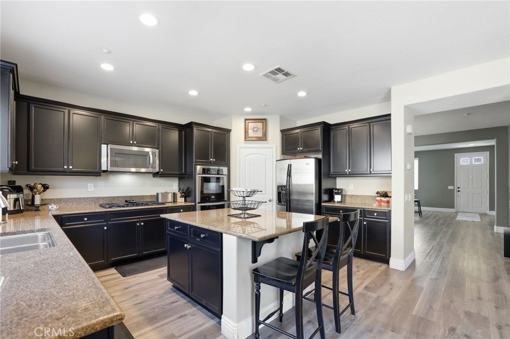 Welcome to this exceptional North Fontana Coyote Canyon pool home offering space upgrades and true pride of ownership. Featuring 4 bedrooms and 4 bathrooms this well appointed residence is designed for both everyday comfort and entertaining. The home showcases new flooring throughout and recently repainted cabinetry creating a fresh move in ready feel. The open and functional floor plan flows seamlessly while oversized windows bring in abundant natural light. Step outside to your private backyard oasis complete with a pool and spa perfect for relaxing or hosting gatherings year round. Energy efficiency and reliability are standout features with fully paid solar consisting of 42 panels and two Tesla Powerwalls which keep the home powered during outages. An EV charger is also installed offering added convenience for electric vehicle owners. Car enthusiasts and adventurers alike will appreciate the four car tandem garage with ceiling mounted storage racks plus RV parking with a side driveway. The primary suite features custom shelving in both walk in closets offering excellent storage and organization. A gun safe is also included. Located within one of the best school districts in Fontana this highly desirable North Fontana neighborhood is known for its strong sense of community. All holidays feel magical here especially the Fourth of July when neighbors come together in a festive atmosphere that feels like a true block party. This home combines functionality upgrades energy efficiency and lifestyle in one complete package. A rare opportunity to own a fully upgraded pool home with paid solar in Coyote Canyon. This is one you do not want to miss.