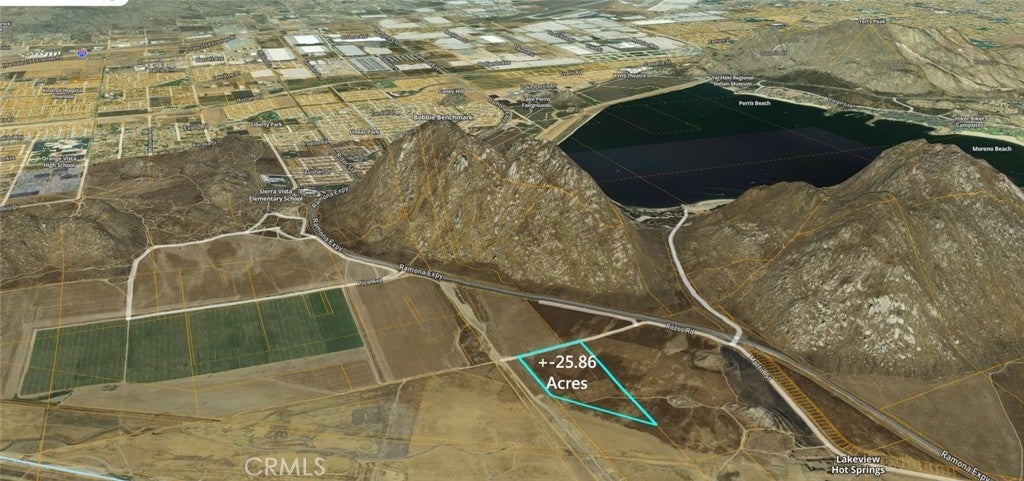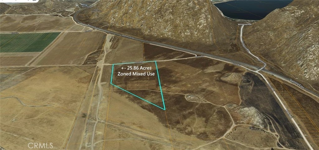 This parcel of approximately 25.86 acres represents a unique investment opportunity. With Multi-Use Zoning and an ideal location, this property is perfectly positioned for future growth. The terrain is flat with a southern slope, offering excellent developmental potential. This lot is right off Ramona Expressway, which will be further expanded with additional interchanges starting in Spring 2025, is expected to become a major thoroughfare. This development aligns with projections indicating that the Inland Empire will be one of the fastest-growing regions in the country. Prospective investors are encouraged to consider this property before surrounding developments drive up prices (see specific plan map). Currently, market conditions indicate that properties in this area are scarce, adding to the attractiveness of this investment. Recent transactions include KB Homes' land purchase nearby and a sale valued at $11 million in this vicinity. The site benefits from a water line along Ramona Expressway, with planned extensions down Pozos Road. Nearby developments, such as the Stoneridge Specific Plan, are nearing approval stages (see www.stoneridgenuevo.com for more details). Additionally, the World Logistics Center is resuming construction, promising thousands of new jobs in the region (see www.theworldlogisticscenter.com for further information). This property offers significant potential and is competitively priced for a quick sale. Do not miss this rare opportunity to invest in a rapidly developing area!
