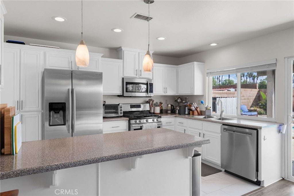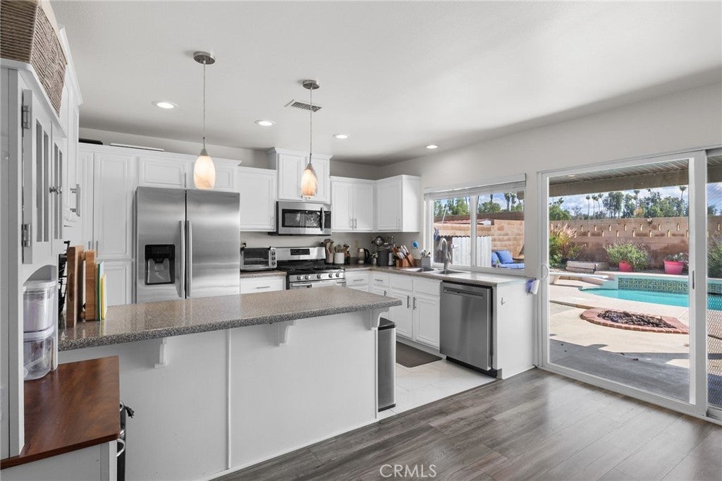 Welcome to this well maintained home located in one of the area’s most desirable neighborhoods. From the moment you arrive, you’ll notice the pride of ownership and inviting curb appeal. This move-in ready home offers versatile floor plan designed for both everyday comfort and effortless entertaining. Step inside to discover updated flooring throughout the home, along with fresh interior paint that creates a bright, clean, and modern feel. Recessed lighting enhances the main living areas, adding warmth and style. An extra-large bonus room provides exceptional flexibility — ideal as a game room, home office, media space, guest area, or easily converted into an additional bedroom to meet your needs. The kitchen is both functional and stylish, featuring stainless steel appliances, elegant teardrop pendant lighting, and generous prep space — perfect for daily living or hosting gatherings. The spacious primary suite offers a beautifully upgraded bathroom complete with dual sinks, quartz countertops, a custom tiled shower and tub surround, and an oversized Roman soaking tub designed for relaxation. Energy efficient upgrades include dual pane windows throughout, as well as a newer A/C condenser installed approximately one year ago to help maintain year-round comfort and energy efficiency. Other upgrades include a dishwasher, water heater, and washing machine that are less than 2 years old. Outside, the property continues to impress. The extra-wide driveway provide convenience and flexibility. Generous spacing on both sides of the home offers added privacy — a rare and desirable feature. The backyard is ideal for entertaining, showcasing a sparkling pool, built-in firepit, bar area, and block wall fencing. With no rear neighbors — just open field views and the iconic palm-tree-lined Victoria Avenue in the distance — you’ll enjoy a peaceful and scenic setting. Take advantage of the nearby historic Victoria Avenue, perfect for walking, jogging, and biking, and enjoy the seasonal fragrance of nearby orange groves during the summer months. Conveniently located near schools, shopping, and freeway access — yet tucked away enough to preserve a quiet atmosphere — this home offers the perfect balance of location and lifestyle. This home is minutes from shopping at the Galleria at Tyler, California Baptist University, and the 91 freeway. A wonderful opportunity in a highly sought-after neighborhood — don’t miss your chance to make it yours.
