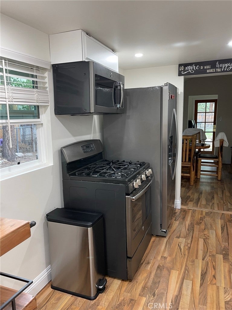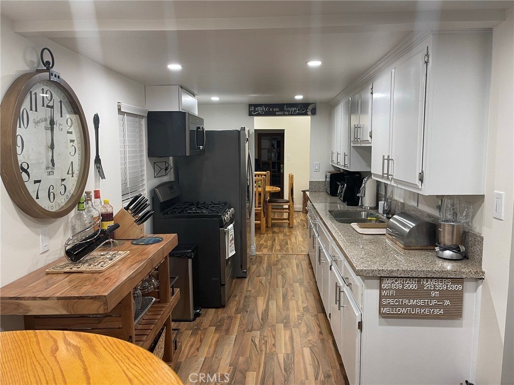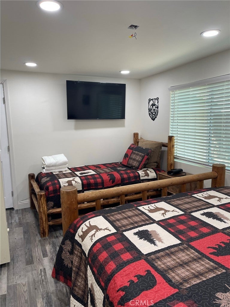 Come and see this beautiful property in the City of Big Bear Lake. . . This house offers 2 bedrooms, and 1 full size bathroom, granite kitchen counter tops, and detached garage that could easely be converted into an ADU, workshop or perhaps a small guess house. It is surrounded by trees and nature and is close to the lake, and store facilities. The house also offers a large lot for toys and entertainment with friends and family or RV parking. This property was fully remodeled approximately 3 years ago. Records show only 1 bedroom; However it physically has 2 bedrooms with closets. This is the way it has been since owned by seller. If you enjoy the beauty of nature, bright light and quietness this is trully a beautiful place to be in.