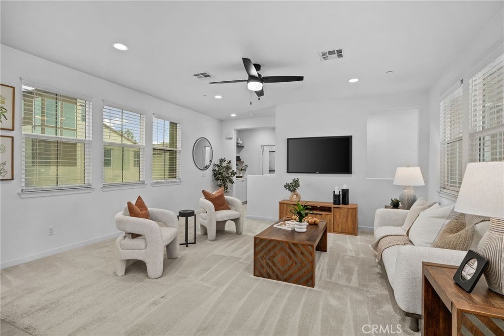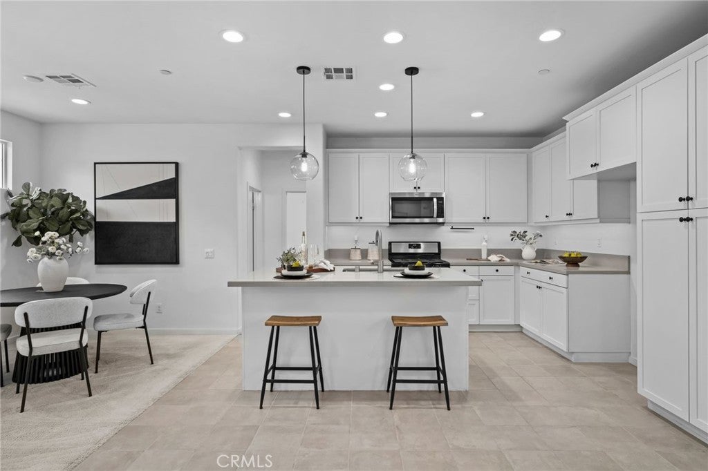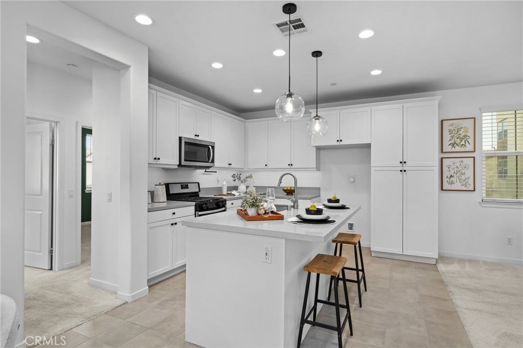 Offering the privacy of a single-family residence with the ease of a low-maintenance lifestyle, welcome to 9463 Retreat Place. A detached home offering a true retreat within The Resort. Step into the main level that feels comfortable and connected, with high ceilings and recessed lighting giving the space an airy, open feel. The kitchen is well-appointed with quartz countertops, white shaker cabinets, stainless steel appliances, and a center island that works equally well for morning coffee or hosting. The primary suite offers a walk-in closet and genuine separation from the two additional bedrooms, a layout that adapts easily to growing families, a home office, or visiting guests. Two and a half baths, a tankless water heater, and a 240V EV charging outlet round out a home that's been thoughtfully set up for everyday life. Life at The Resort revolves around community. Residents enjoy a pool, fitness center, business center, conference rooms, BBQ areas, fire pits, bocce ball and cornhole courts, a dog park with wash station, and an event center that brings the neighborhood together throughout the year. Walkable cafés including Teaspoon boba shop and a Cassidy's Corner Bagel Cafe are just steps away, the kind of convenience that becomes part of your daily routine quickly. Getting around is straightforward, too. You're approximately 5 minutes from the Rancho Cucamonga Metrolink Station, the I-10 and I-15 Express Lanes, which means Downtown Los Angeles and Orange County is accessible for a morning commute. Victoria Gardens, Top Golf, Haven City, Quakes Stadium, and Ontario International Airport are all within a short drive for dining, entertainment, or a quick trip out of town.