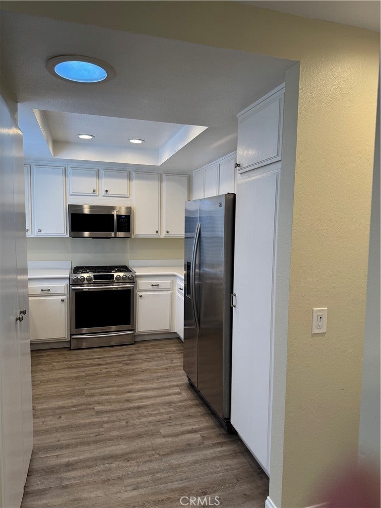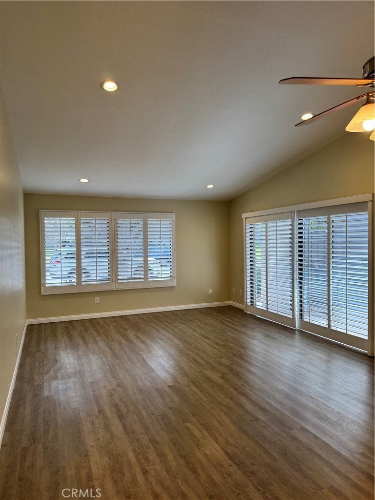 This home is a 2 bedroom 2 bath home in the adult community of Huntington Landmark. We just finished upgrading with new interior paint, new dishwasher, new microwave, new ceiling fan. Living square footage is 1072 per Assessor's roll. The living and and dining area are open space. The cabinet in the dining/living room area has water piping where the old bar used to be done by the prior owner. The front gate to the home has a small patio, there is also an enclosed patio to the rear of the condo off the Main bedroom slider door. Community has common pool and spa, clubhouse, tennis, shuffle board and more. The garage is a 1 car detached garage with an opener behind our unit and near the mail box too.