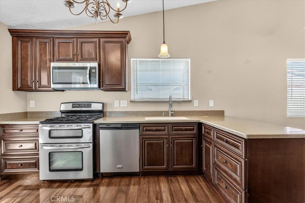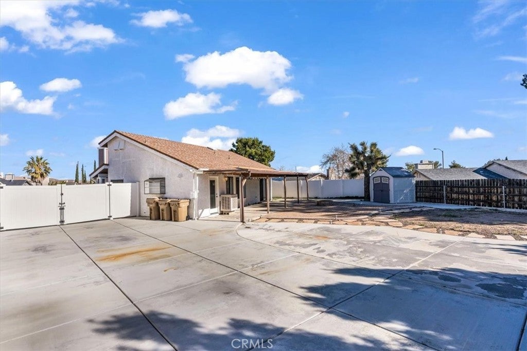 Wow! check out this awesome Hesperia listing. Great location close to major shopping and easy access to I15 for commuters. This 3 bedroom, 2 bathroom home sits on a large 8,900 square foot cul-de-sac lot. Property features lots of off street parking and large concrete RV parking area in backyard with electric and water hookups, large covered patio, fire pit and storage shed. Property also features vinyl fencing and gates, exterior security cameras with security system and rain gutters on the front and back that are plumbed underground. Interior features a remodeled kitchen with high end cabinets, upgraded appliance and solid surface counter tops. Living room features upgraded carpet, vaulted ceilings, 2 tone paint and a wood stove. Dinning area has a ceiling fan, vaulted ceilings and upgraded flooring. Main bedroom features upgraded carpet, sliding door with vertical blinds, vaulted ceilings and a plant shelf over the closet. En suite bathroom features an upgraded vanity, mirror and counter top with a large shower. Guest bathroom features an upgraded vanity, mirror and counter top with glass tub enclosure. Bedroom 2 and 3 are decent size and feature vaulted ceilings. HOA provides a small park with basketball court lighted grass picnic area. HOA also provides weekly street sweeper, private security and maintenance of the curbs and pavement in the development.