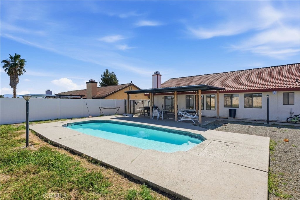 Welcome to this charming 3-bedroom, 2-bath single-story home in Hesperia. Featuring tile flooring throughout the main living areas, this home offers durability and easy maintenance. Major system upgrades include a recently updated furnace, A/C unit, and water heater for added comfort and efficiency plus an E/V charger. Step outside to a spacious backyard with a private swimming pool — perfect for entertaining, relaxing, and enjoying the High Desert lifestyle, the side yard has plenty of space for your RV and it features an RV cleanout as well. Located in a desirable neighborhood with public sewer access (no septic), this Hesperia pool home offers space, functionality, and incredible potential. Don’t miss this opportunity to make it your own!