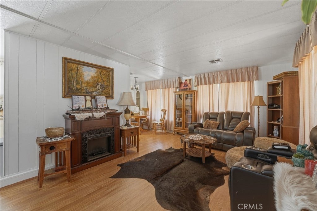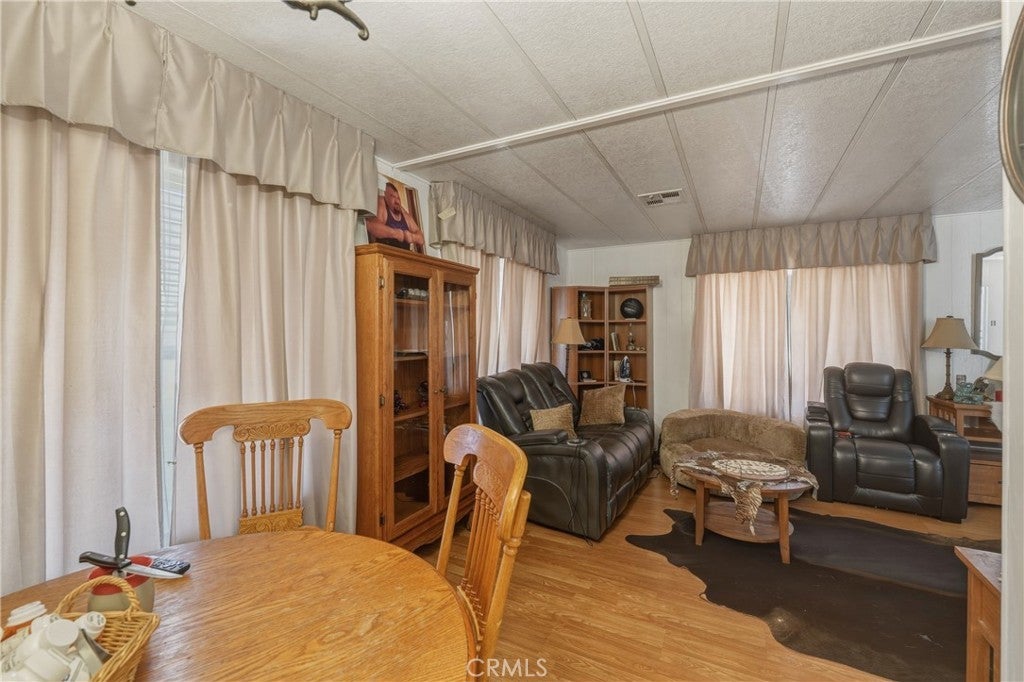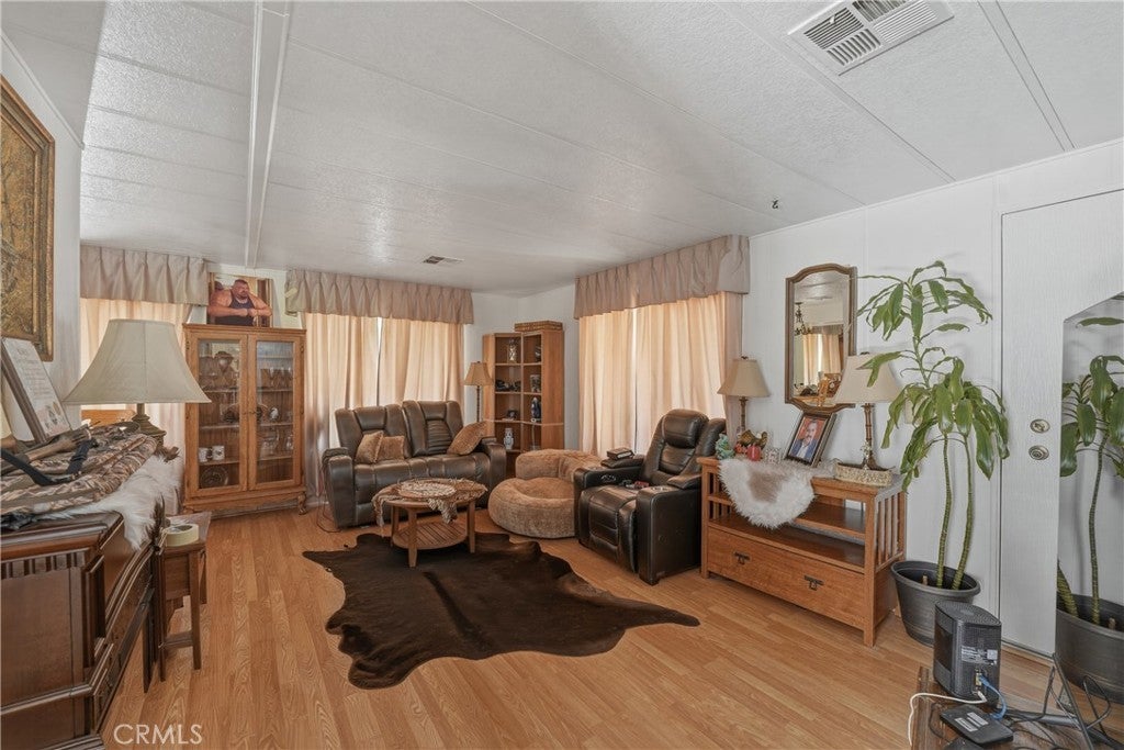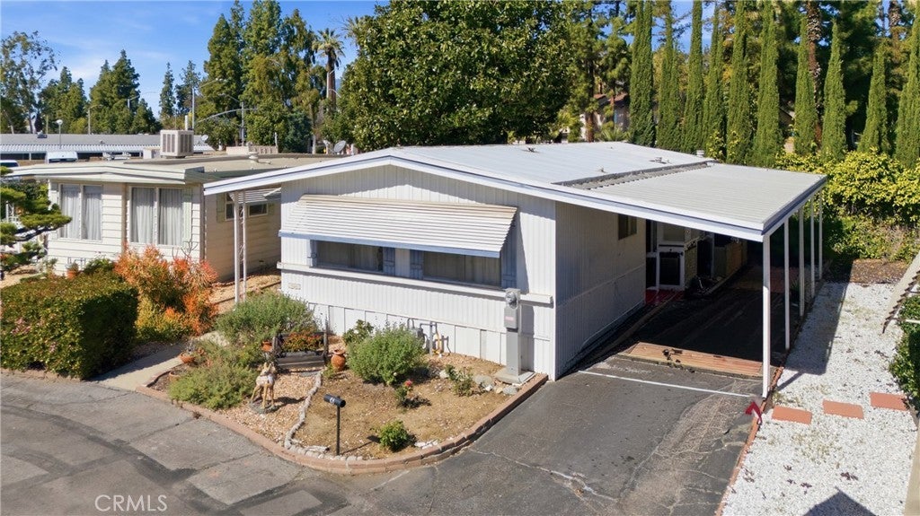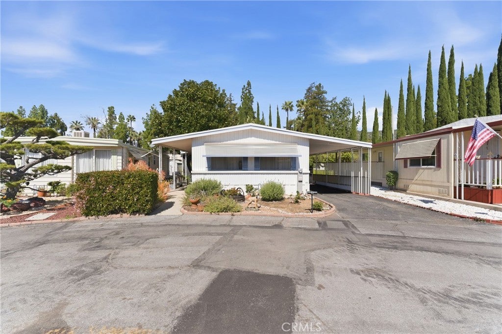Welcome to this beautifully maintained manufactured home nestled in a desirable 55+ community in Azusa, just minutes from the stunning foothills of the San Gabriel Mountains. Ideally located near the community entrance for easy access, this 2-bedroom, 1 full bath home offers comfort, convenience, and a peaceful setting. Step inside to a bright and inviting interior featuring warm-toned wood-like laminate flooring throughout the main living areas, complemented by vinyl flooring in the kitchen and bathroom for added durability. Fresh white paint throughout most of the home enhances the natural light, creating a clean and airy feel. The functional layout includes a cozy living space, a well-appointed kitchen, and an indoor laundry area conveniently located near the kitchen for everyday ease. Both bedrooms offer comfortable living space, making this home truly move-in ready. Residents of this welcoming 55+ community enjoy excellent access to nearby shopping centers, grocery stores, dining options, and public bus transportation—everything you need just moments away. If you're looking for a turnkey home in a scenic location with mountain views and everyday conveniences, this is one you won’t want to miss.