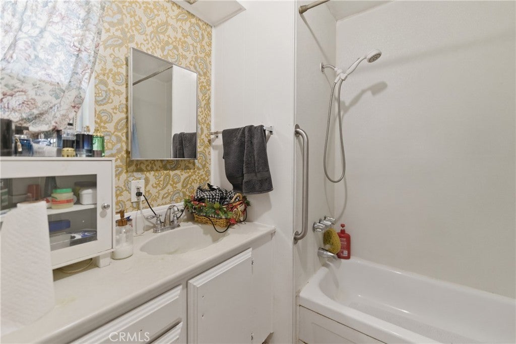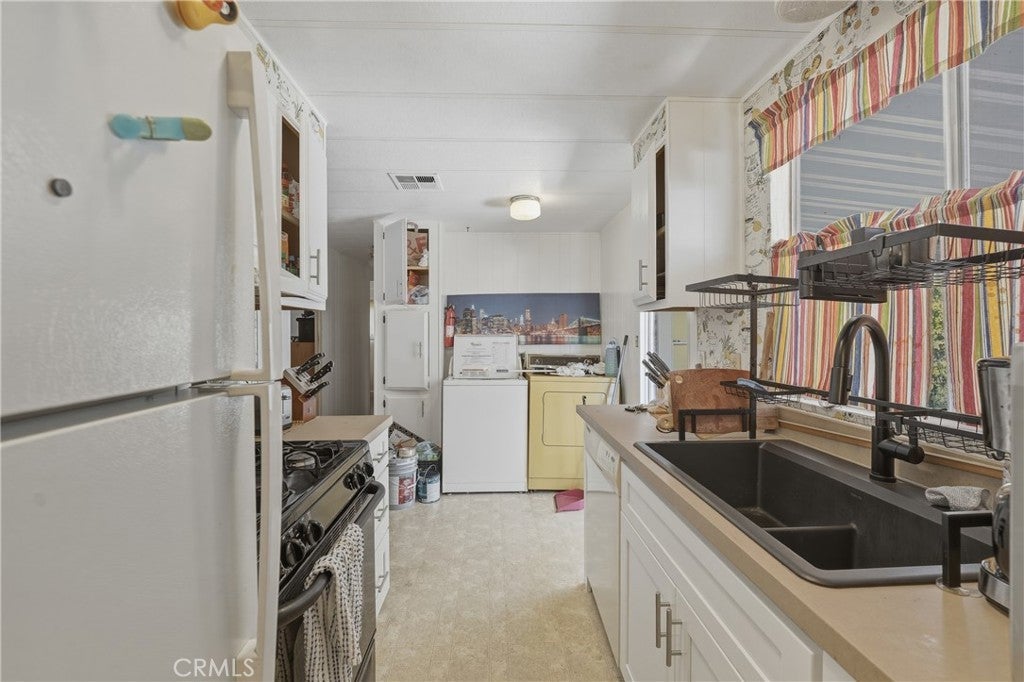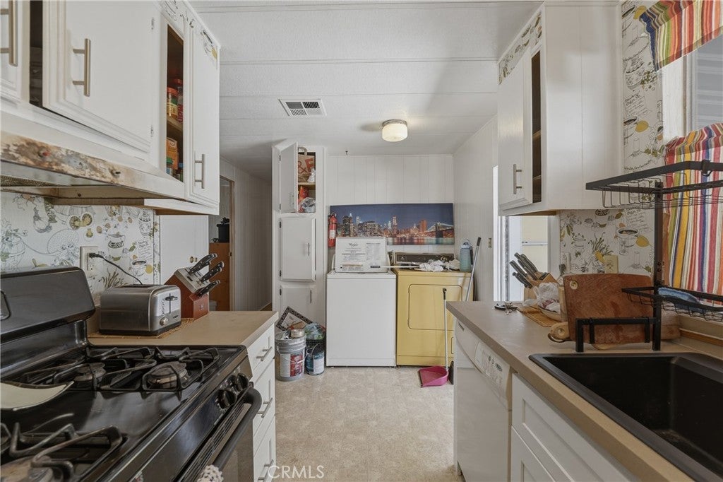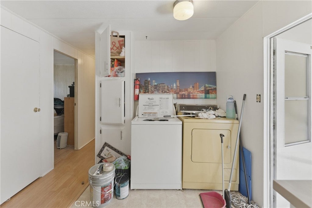 Welcome to this beautifully maintained manufactured home nestled in a desirable 55+ community in Azusa, just minutes from the stunning foothills of the San Gabriel Mountains. Ideally located near the community entrance for easy access, this 2-bedroom, 1 full bath home offers comfort, convenience, and a peaceful setting. Step inside to a bright and inviting interior featuring warm-toned wood-like laminate flooring throughout the main living areas, complemented by vinyl flooring in the kitchen and bathroom for added durability. Fresh white paint throughout most of the home enhances the natural light, creating a clean and airy feel. The functional layout includes a cozy living space, a well-appointed kitchen, and an indoor laundry area conveniently located near the kitchen for everyday ease. Both bedrooms offer comfortable living space, making this home truly move-in ready. Residents of this welcoming 55+ community enjoy excellent access to nearby shopping centers, grocery stores, dining options, and public bus transportation—everything you need just moments away. If you're looking for a turnkey home in a scenic location with mountain views and everyday conveniences, this is one you won’t want to miss.