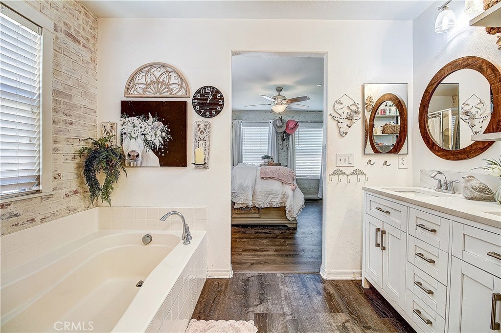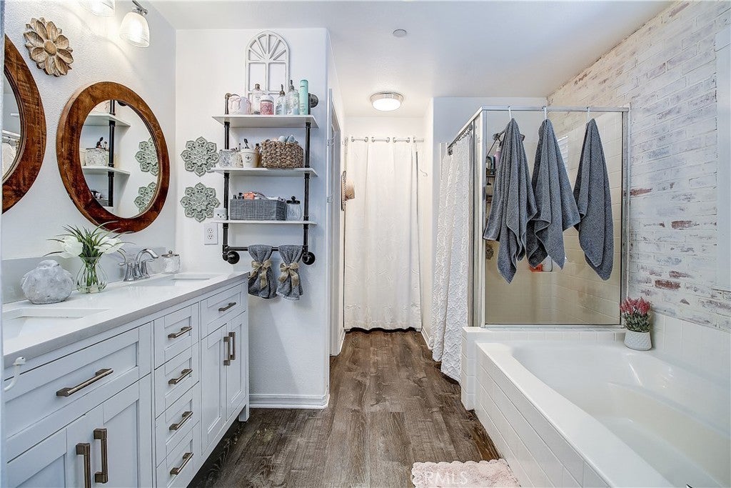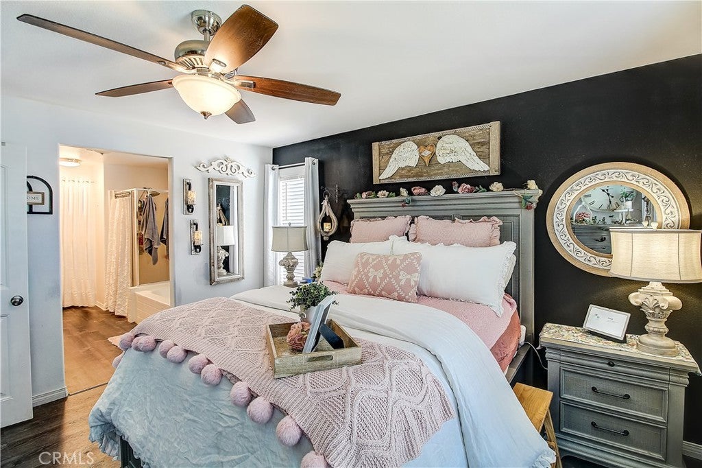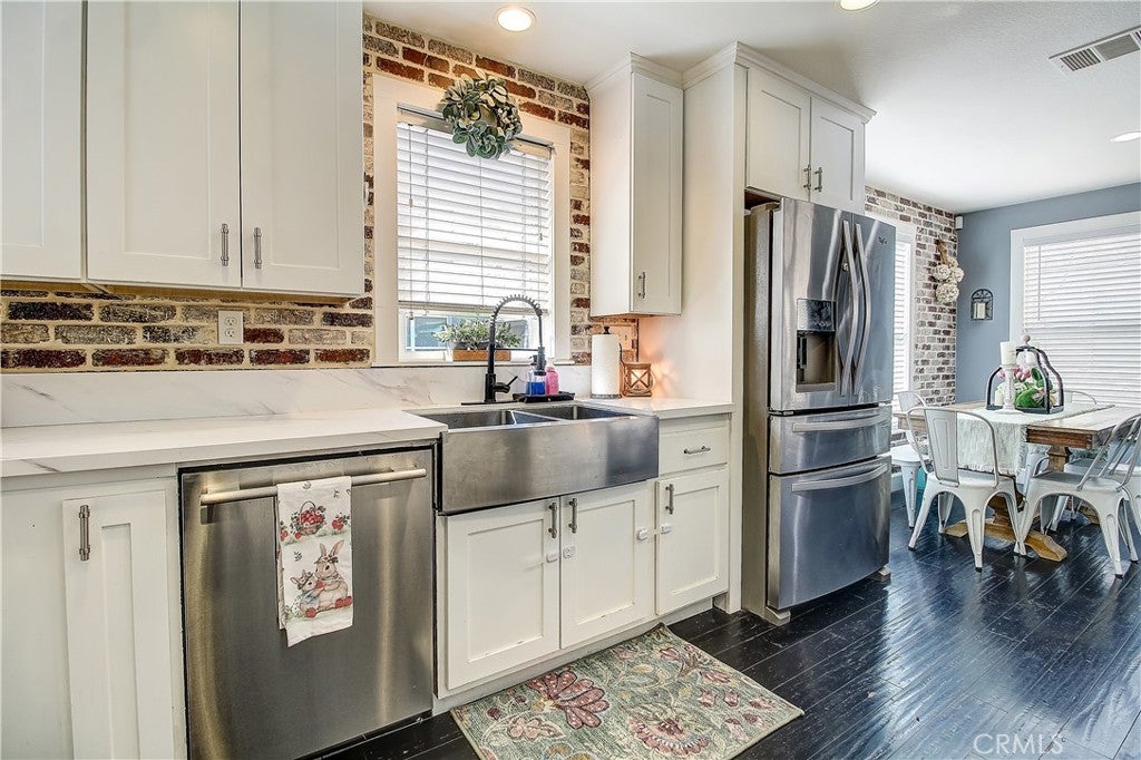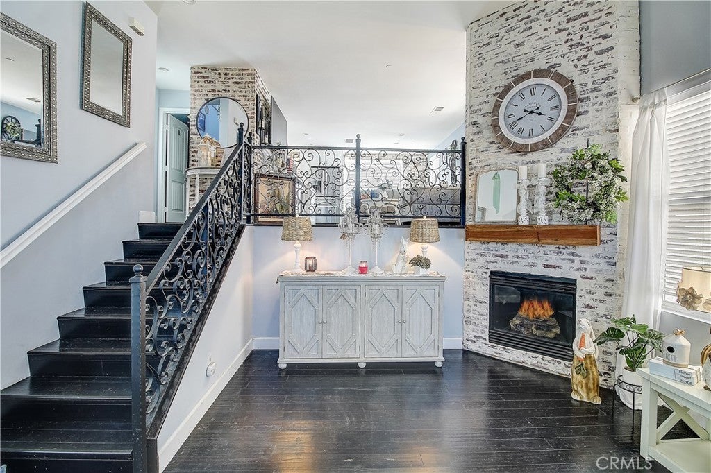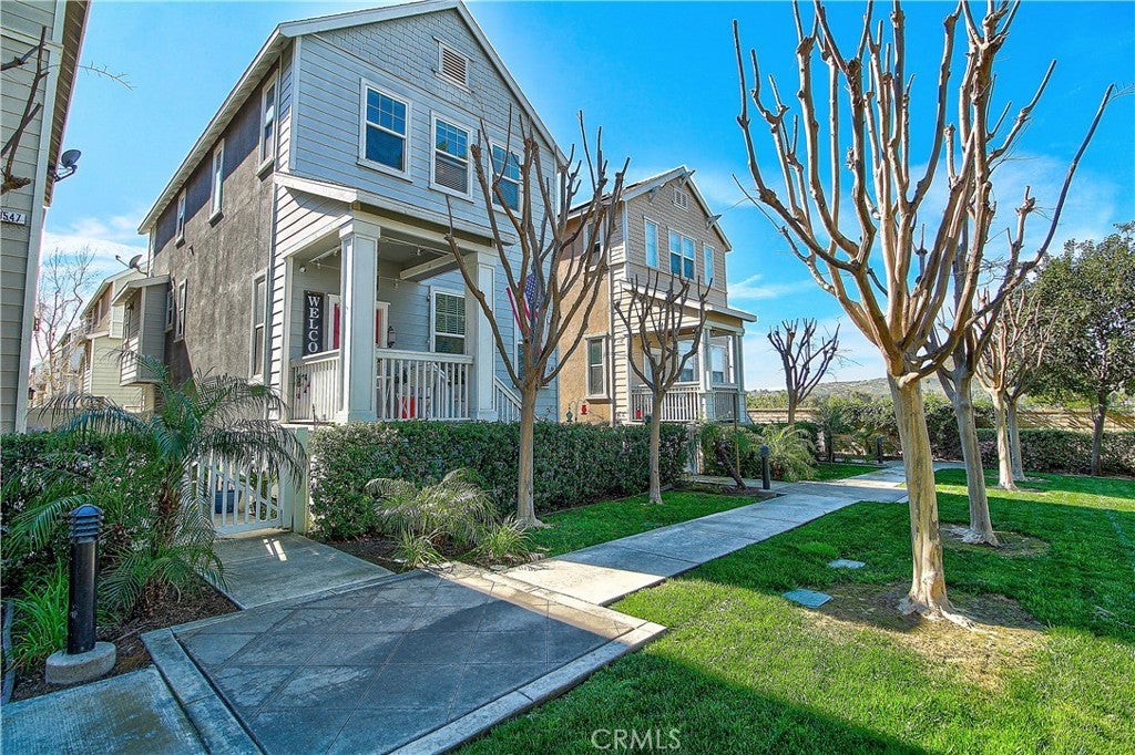 PRICE IMPROVEMENT! Adorable Cape Cod-style tri-level townhouse tucked away at the back of a private, beautifully maintained community with only 22 units - and completely detached with no shared walls! Offering 1,815 sq ft with 3 bedrooms and 2.5 bathrooms, this home feels like walking into a model. Enter through the front door into a stunning living room featuring rich bamboo flooring and a gorgeous floor-to-ceiling fireplace with a custom German schmear finish. From the living room, you can see up to the family room through an elegant wrought-iron railing, creating an open and inviting architectural design. The main living level offers a spacious family room, dining area, and a beautifully appointed kitchen with white cabinetry extending to the ceiling, stainless steel appliances, and charming German schmear finish brick accents carried throughout the home. A convenient half bath completes this level. Upstairs, the primary suite features an attached bathroom with dual sinks, a private water closet, a separate soaking tub and shower, and a walk-in closet. Two additional bedrooms, a full bathroom, and an upstairs laundry room provide both comfort and functionality. The lower level offers a large storage area closet approximately 4' x 22' and direct access to the attached two-car garage. Enjoy outdoor living in the small gated side courtyard, complete with a cozy firepit — perfect for relaxing or entertaining. The greenbelt is nicely landscaped with beautiful crape myrtle trees when in full spring bloom enhances the lush greenbelt setting in front of the home, creating a picturesque and welcoming approach. Amenities include a basketball court, sand volleyball court, and picnic tables. Ideally located near the 91 and 15 freeways, shopping, and dining. An exceptional opportunity to own a refined, turnkey residence where design, comfort, and location converge. An exceptional opportunity to own a refined, turnkey residence where design, comfort, and location converge. Eligible for $10,000 forgivable loan (no payments, no interest) to cover closing costs, rate buy-down and/or down payment. 100% financing available with NO MI.