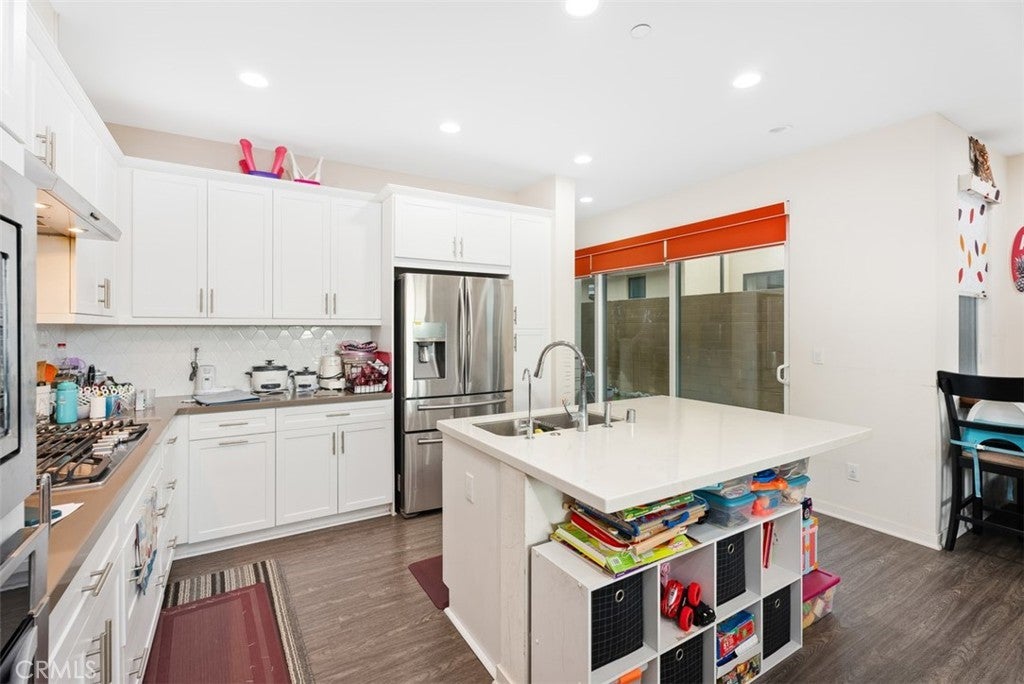 Modern 3 Bed/3 Bath townhome with downstairs bedroom, spacious loft, two decks, solar panels, 2 car garage and EV charger. Built in 2017, this 2,200 sq ft home offers an open layout, vinyl flooring on the first floor and loft, abundant natural light, and multiple outdoor spaces. The downstairs bedroom with full bath is ideal for guests, in-laws, or a home office. Upstairs features a large loft with its own deck, plus a primary suite with walk-in closet, large bath, and a second private deck. Solar panels reduce electricity costs, and the attached 2-car garage includes an EV charging station. Minutes to I-5 and I-405, shopping centers, and the upcoming walkable Canopy center. Zoned for top IUSD schools: Cadence Park (K-8) and Portola High. Great Park HOA amenities include pools, parks, sports courts, playgrounds, and community spaces.