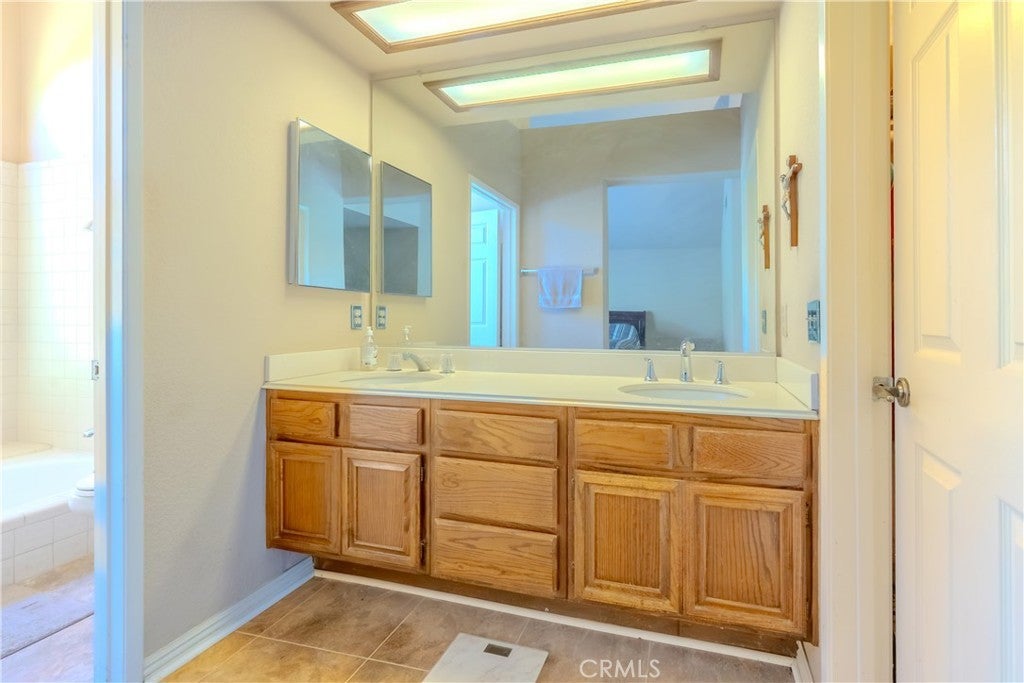 Great space, great location, and the opportunity to make it your own! This charming single-story home offers 3 bedrooms and 2 bathrooms with a spacious layout highlighted by high ceilings and an open, airy feel. The home features two separate living areas, including a welcoming front living room with a cozy fireplace at the main entrance and an additional family room toward the back of the home near the kitchen—creating flexible spaces for relaxing, entertaining, or gathering with family. The kitchen offers granite countertops, ample cabinetry, breakfast bar seating, and a skylight that brightens the space. The primary suite features high ceilings, sliding doors leading to the backyard patio, a walk-in closet, and an en-suite bathroom with dual sinks and a sunken tub/shower combination positioned beneath a large arched window. Additional highlights include an indoor laundry room, wet bar area, and an attached two-car garage with direct access. Move-in ready and full of potential, this home presents a great opportunity for buyers to bring their vision and personal style while enjoying a prime location close to schools, shopping, dining, and freeway access.