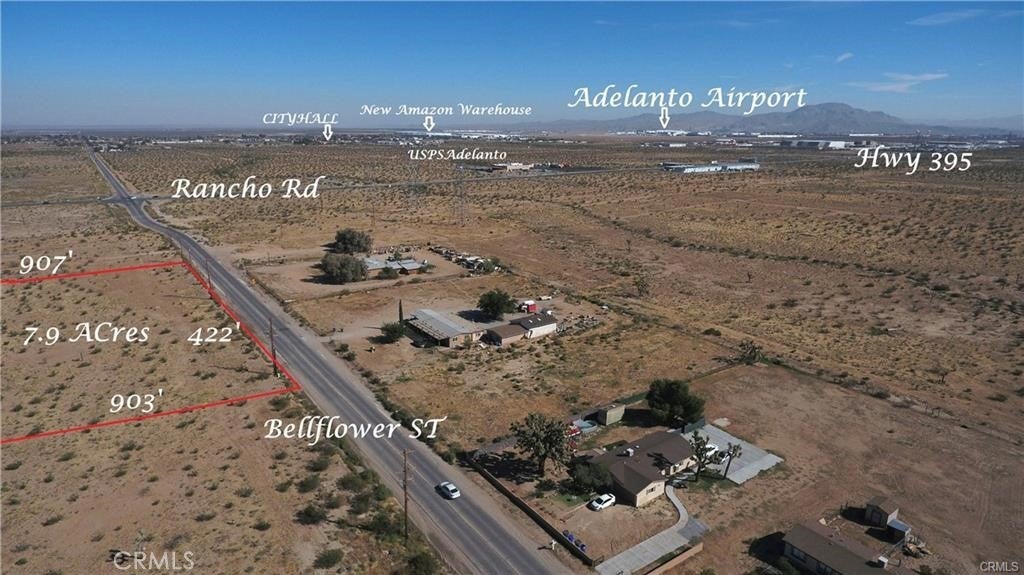Prime Vacant land of 7.89 acres with RM 12 zoning, permitting up to 12 units per acre, translates to over 90 potential units encompassing single-family residences, townhomes, condominiums, apartments, single-room occupancy, educational institutions, hospitals/nursing facilities, churches/religious centers, solar farms, clubhouses, and more. Electricity and water infrastructure are readily accessible along the paved Bellflower St., while the sewer system is conveniently located near Rancho Rd. This property is ideal for development or investment, situated in the heart of Adelanto city amidst its rapid growth in industrial and residential projects.