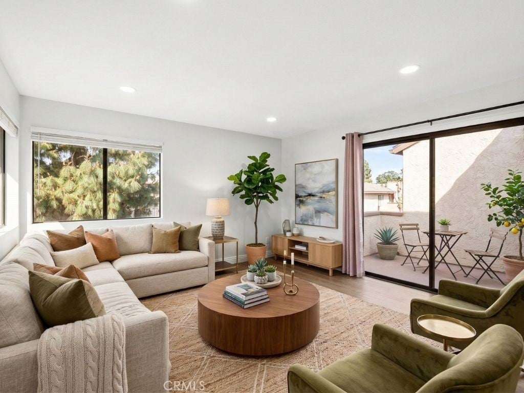 Located approximately 0.6 miles from the University of California Riverside, this second-floor condominium is situated in a gated community and offers convenient access to nearby shopping, dining, and commuter routes. The open-concept living and dining area features wide plank wood-look flooring, recessed lighting, and large windows that bring in abundant natural light. A sliding glass door opens to a private balcony with exterior storage, providing additional outdoor space. The kitchen includes granite countertops, stainless steel appliances, gas range, microwave hood, dishwasher, dual-basin sink, and extensive cabinetry with wraparound counter space. The open layout connects the kitchen and living area, creating a functional space for everyday living. The bedroom includes large windows and mirrored closet doors, while the bathroom features a granite vanity countertop, framed mirror, updated lighting, and a tub/shower combination. Located near University Village shopping center, offering restaurants, grocery stores, coffee shops, and everyday services. Additional nearby destinations include the University of California Riverside campus, Andulka Park, and convenient access to the 215 freeway for commuting throughout the Inland Empire. The gated community setting, private balcony, and proximity to UCR, nearby parks, retail centers, and freeway access provide convenient Riverside living.