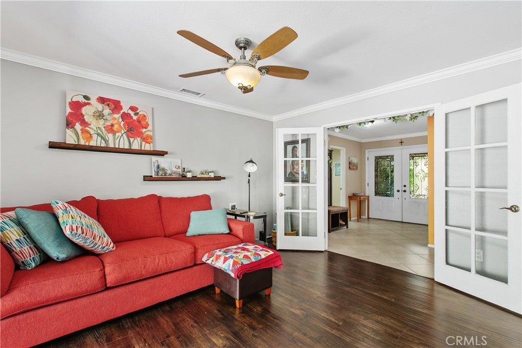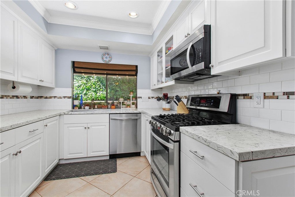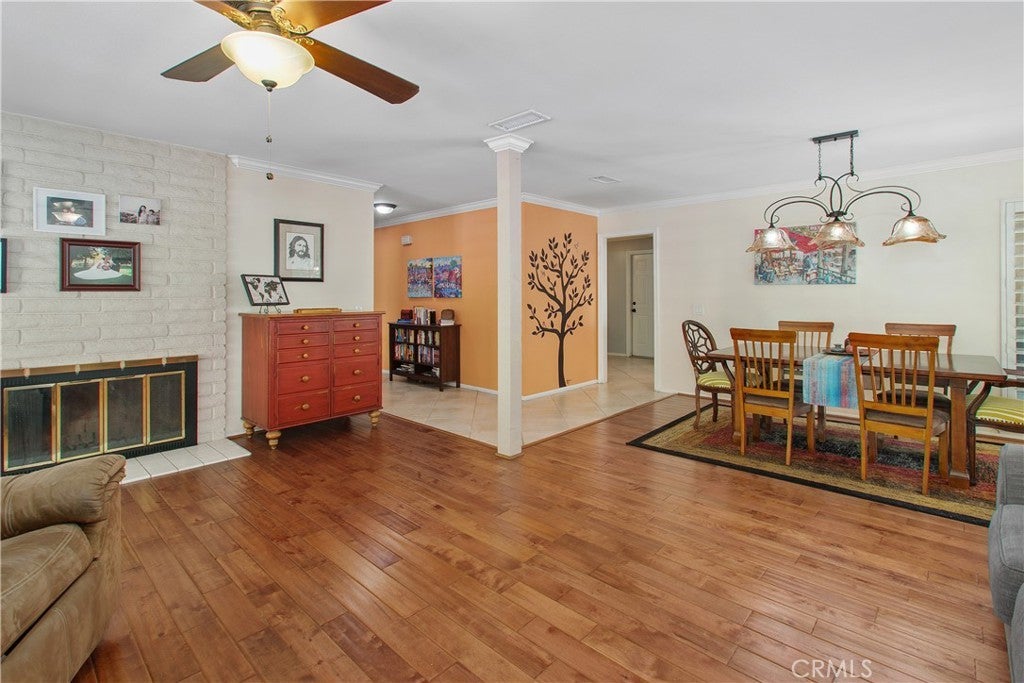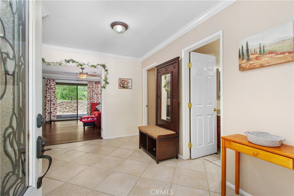 Welcome to 1451 Trenton Dr, perfectly situated in Riverside’s desirable Canyon Crest neighborhood. Upon arrival, you'll be greeted by views from the front patio—an ideal spot to savor your morning coffee while watching the sun rise over the Box Springs Mountains and the UCR campus. As you step into the front courtyard, it’s immediately clear that this meticulously maintained residence is truly turnkey. Enter inside to discover an open, airy layout with multiple access points to both the back and side patios, seamlessly connecting indoor and outdoor living. The living and dining rooms combine to create a welcoming space for entertaining with crown molding and laminate flooring. The fully remodeled kitchen features elegant marble countertops, high-end LG appliances, and a charming coffee bar nook—perfect for both everyday living and hosting guests. Luxury vinyl and tile flooring flows throughout the home, providing a cohesive, sophisticated look that suits any decor style. The double-sided fireplace serves both the living room and the cozy family room, enhancing both comfort and style. Down the hallway, you’ll find 4 spacious bedrooms, filled with natural light and ample closet space. The updated hall bath has modern vanities and sleek tile accents. The primary suite boasts crown molding, vinyl flooring, and a slider that opens to the back patio, offering backyard views and abundant natural light. The remodeled primary bathroom includes a marble vanity sink, a large shower enclosure, and a spacious closet to complete the suite. Step outside to your private backyard retreat. The extended eve patio cover provides ample shade, making the outdoor space perfect for relaxing or entertaining. The updates to the home extend beyond its physical aspects. The systems have also been updated. The HVAC system, including all of the ducting, is only 2 years old. The water heater is only 1 year old and is very efficient. This home masterfully blends luxury with desirable outdoor amenities, offering comfort and elegance at every turn. Its prime location ensures easy access to UCR, downtown Riverside, the Canyon Crest shopping center, and much more.