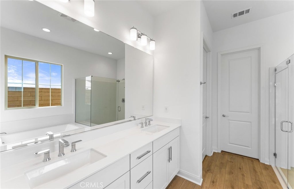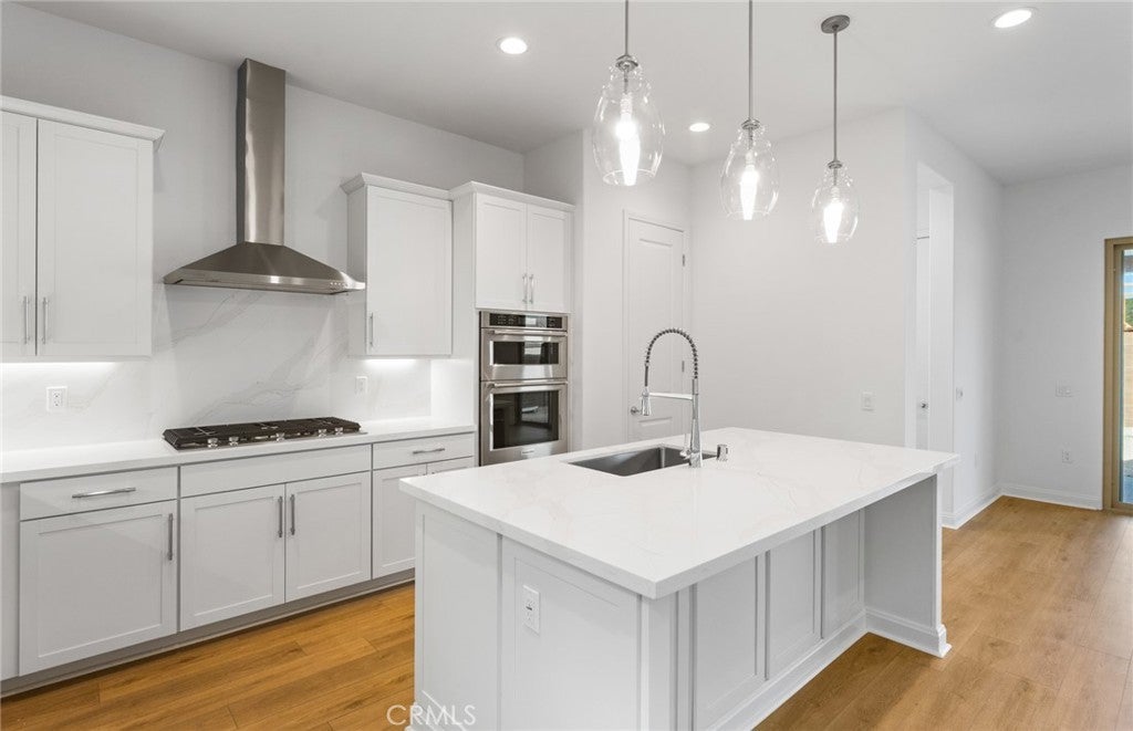 Featuring an open floor plan with modern, detailed upgrades, this Plan 1 model is ready for move-in! This single level living home boasts upgraded kitchen aid appliances, a sleek kitchen backsplash with quartz countertops, trim packages. -White cabinetry throughout -Upgraded LVP flooring -SS Kitchen aid appliances -Spacious cover patio -Center - sliding glass door -Surrounded by rolling hills