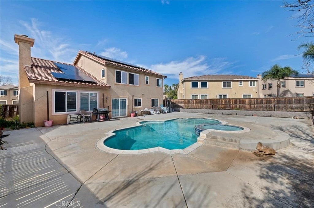 Beautiful 5 bedroom, 3 bath pool home in the desirable Mountain View area of Sundance. The spacious floorpan includes one bedroom and full bathroom downstairs, a large family room open to the kitchen, and a dedicated office with double doors. Upstairs features four bedrooms, including a primary suite with two closets, plus a convenient upstairs laundry room. Enjoy your private backyard with a pool and jacuzzi, perfect for entertaining. Additional features include a 3- car garage and a great location close to shopping, dining, and parks.