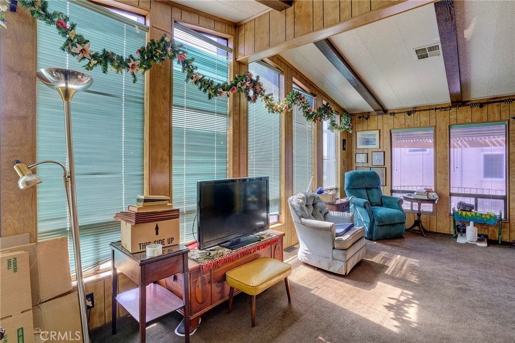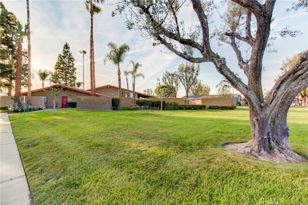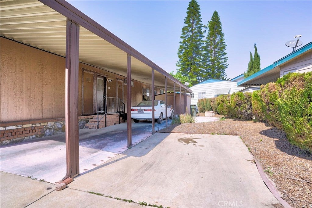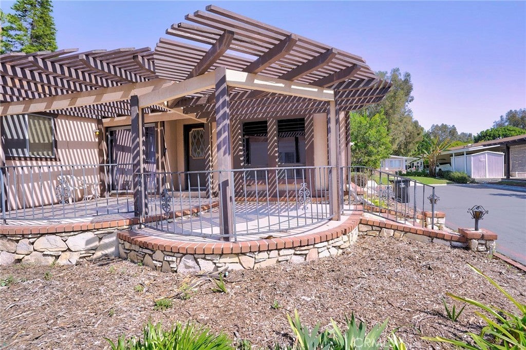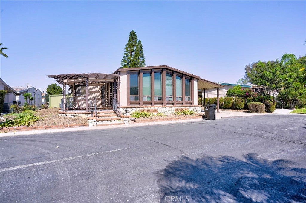 Best location with one of the largest lots in the prestigious Anaheim Shores Estates! This home offers rare parking for 4–6 cars and is ideally situated across from the parking island with mature trees, creating a pleasant and open setting. Anaheim Shores Estates is a desirable family park featuring expansive greenbelts and wider streets. Residents enjoy beautifully maintained clubhouse amenities including a pool, spa, clubhouse with kitchen, card room, billiard room, multipurpose room, BBQ area, and covered picnic area. Inside, the home features a spacious primary suite with a large walk-in closet and an ensuite bathroom with a soaking tub and separate shower. The second bedroom is generously sized, plus a versatile den that can serve as an office or optional third bedroom. The living room showcases high vaulted ceilings with exposed beams and a cozy fireplace. The kitchen opens to the formal dining area and family room, creating an inviting layout for entertaining. Sliding glass doors in the family room lead to a covered patio, perfect for relaxing or outdoor dining. Conveniently located near the 91 and 5 freeways for easy commuting.